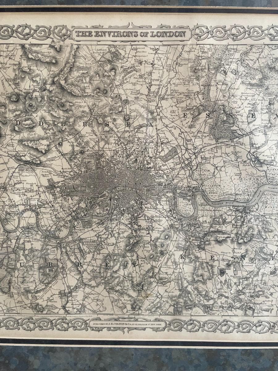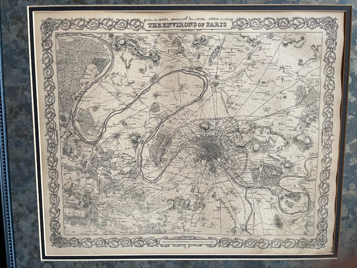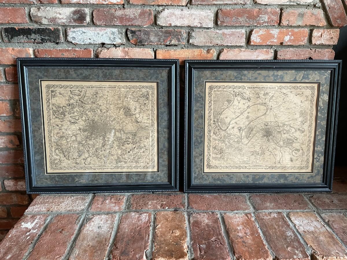 Vintage “The Environs of Paris” and “The Environs of London” Framed Prints.