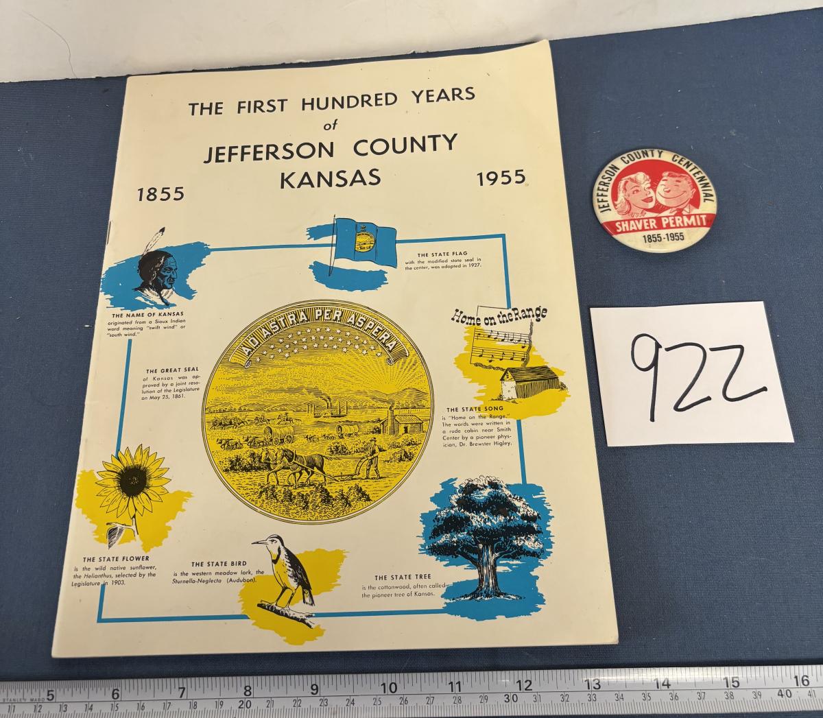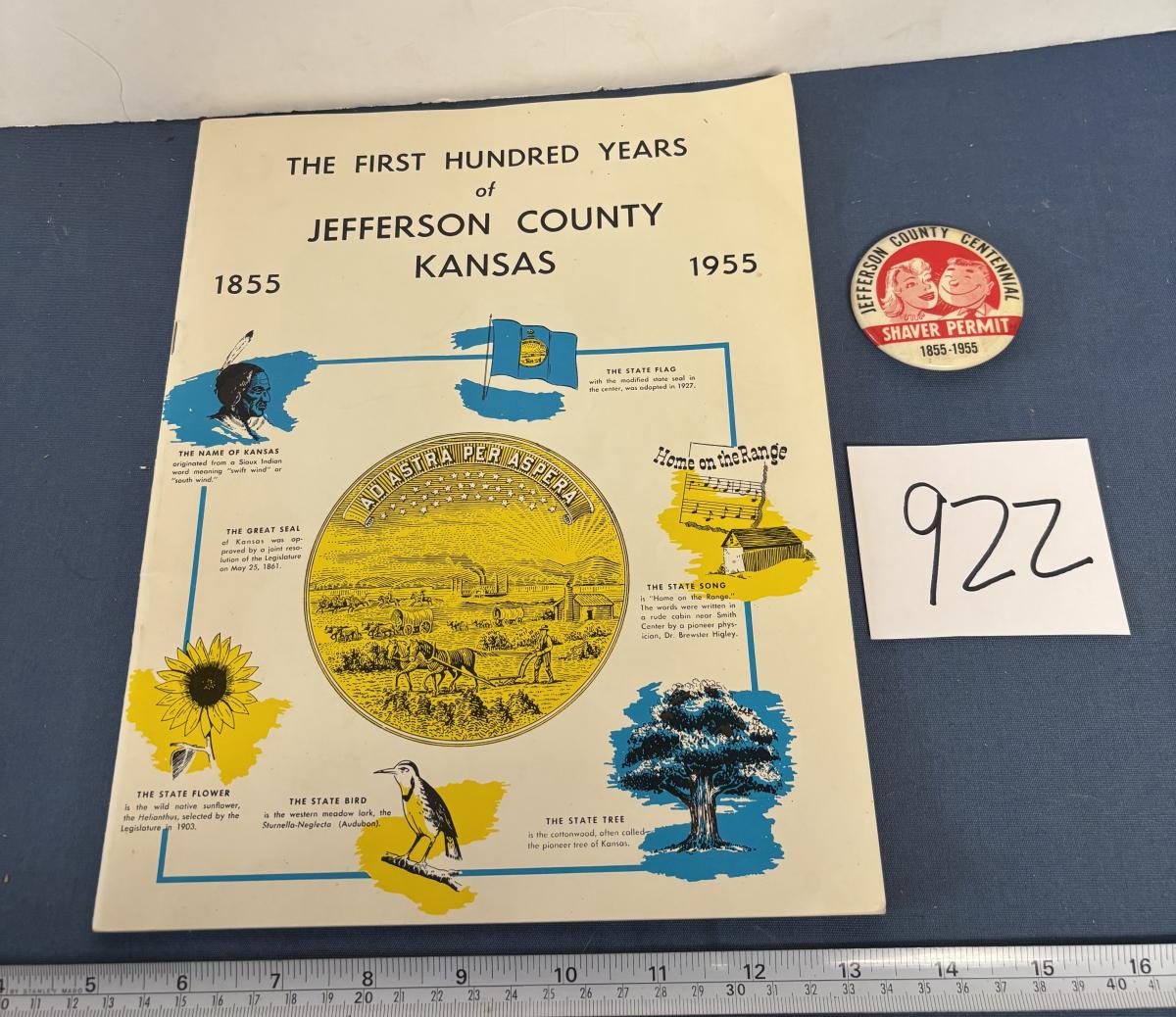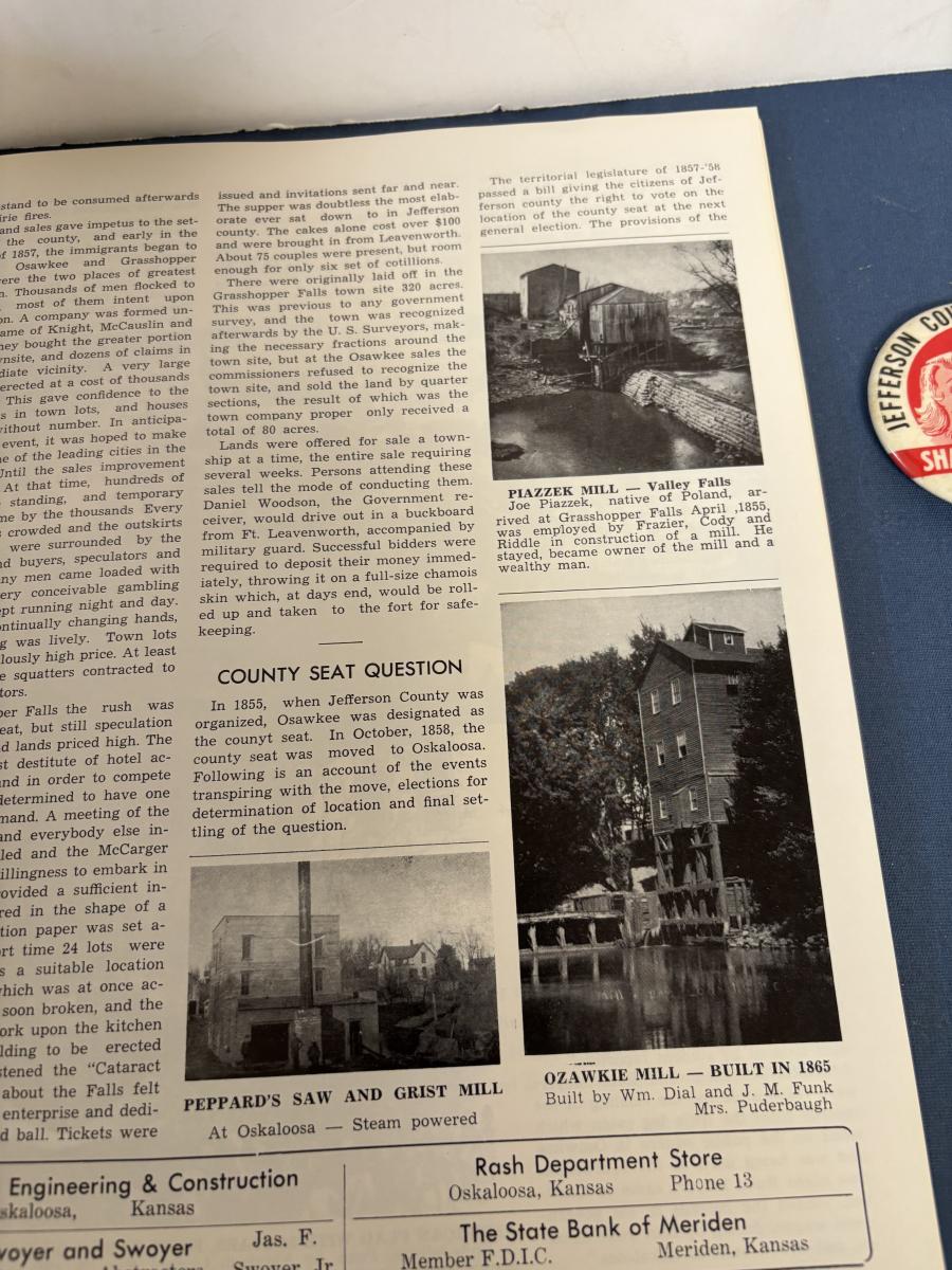 Vintage The First 100 Years of Jefferson County Kansas Book and Pin