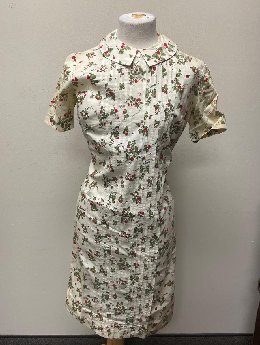 Vintage The Villager Size 10 Strawberry Zip Up Tan Dress