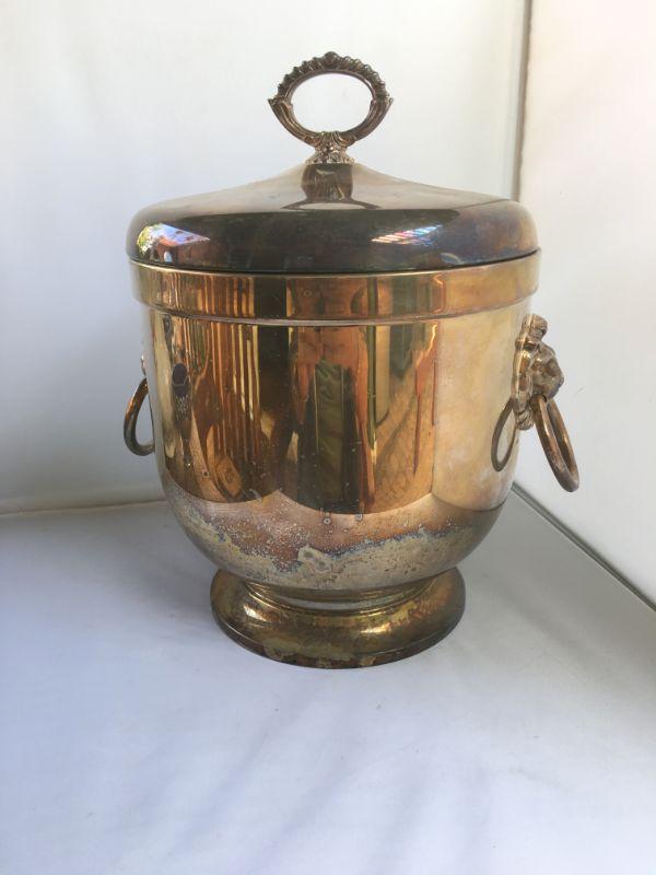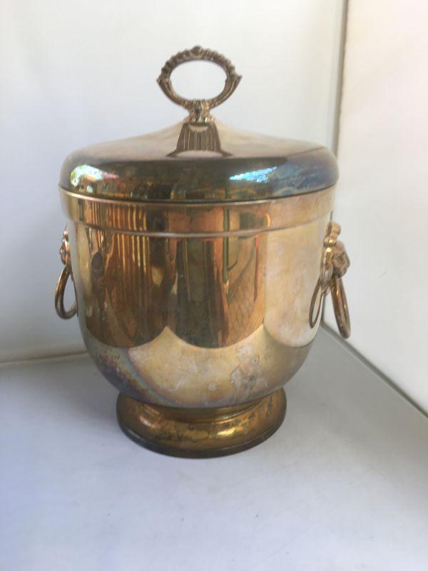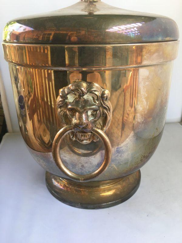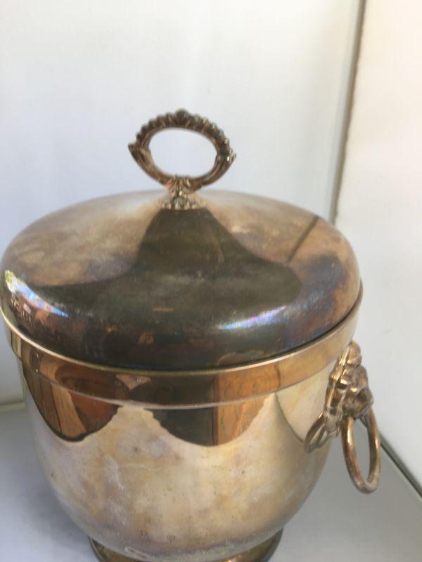 Vintage Thermos Brand Ice Cooler Silver Plated w/ Lion Handles