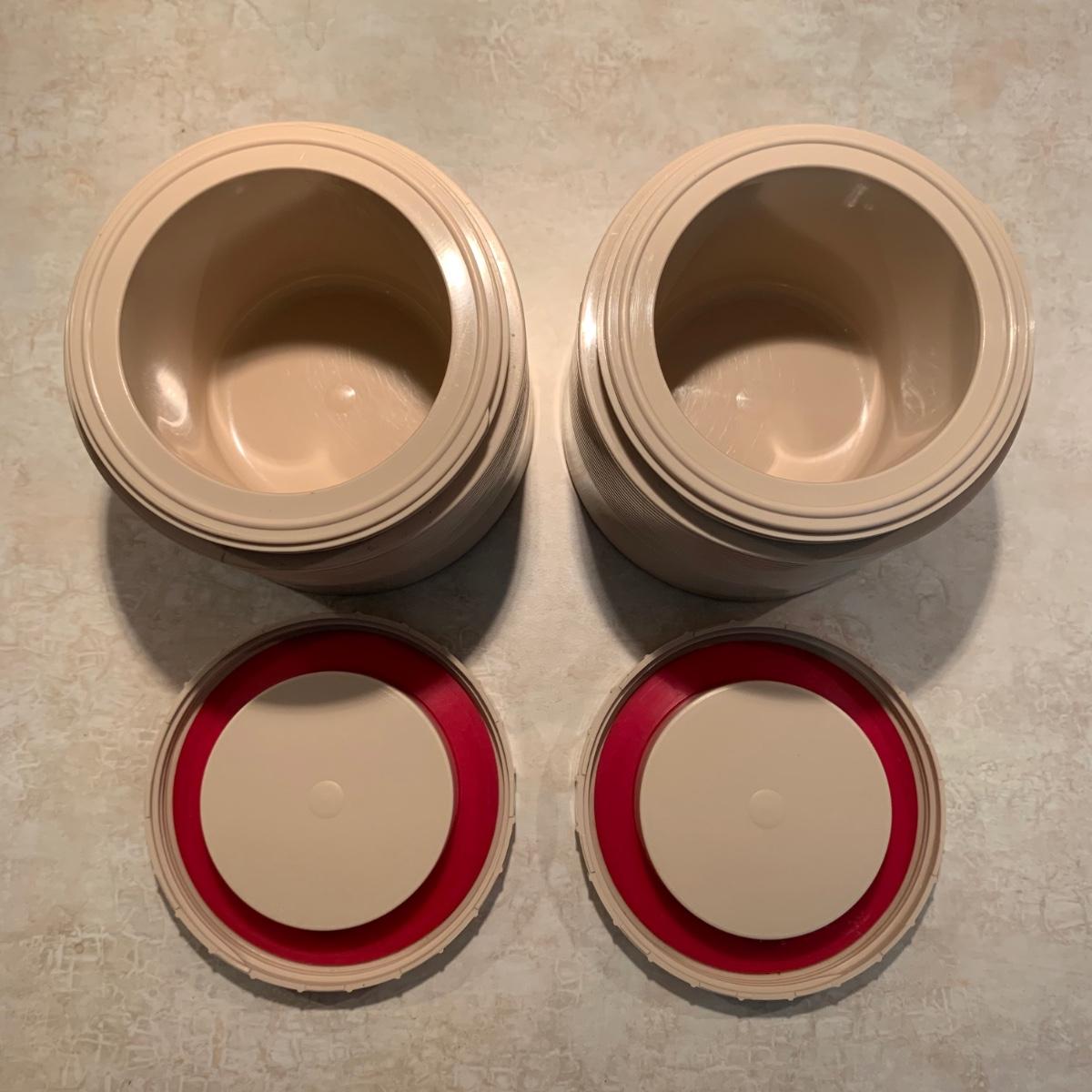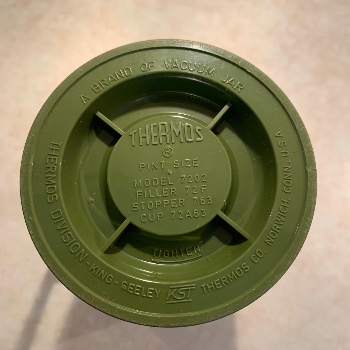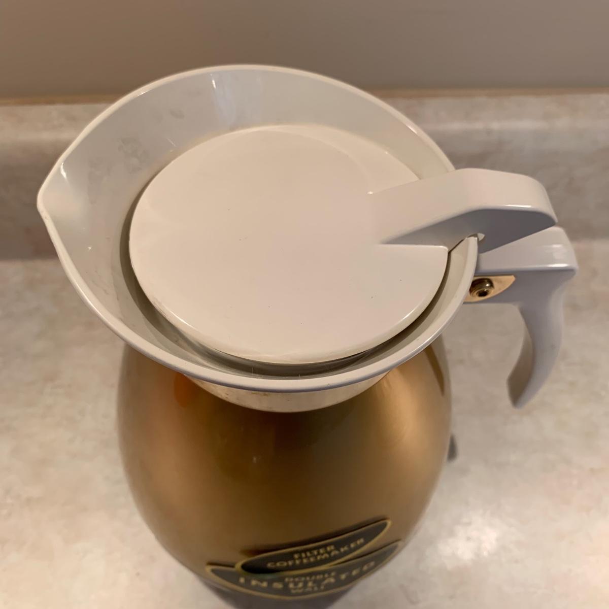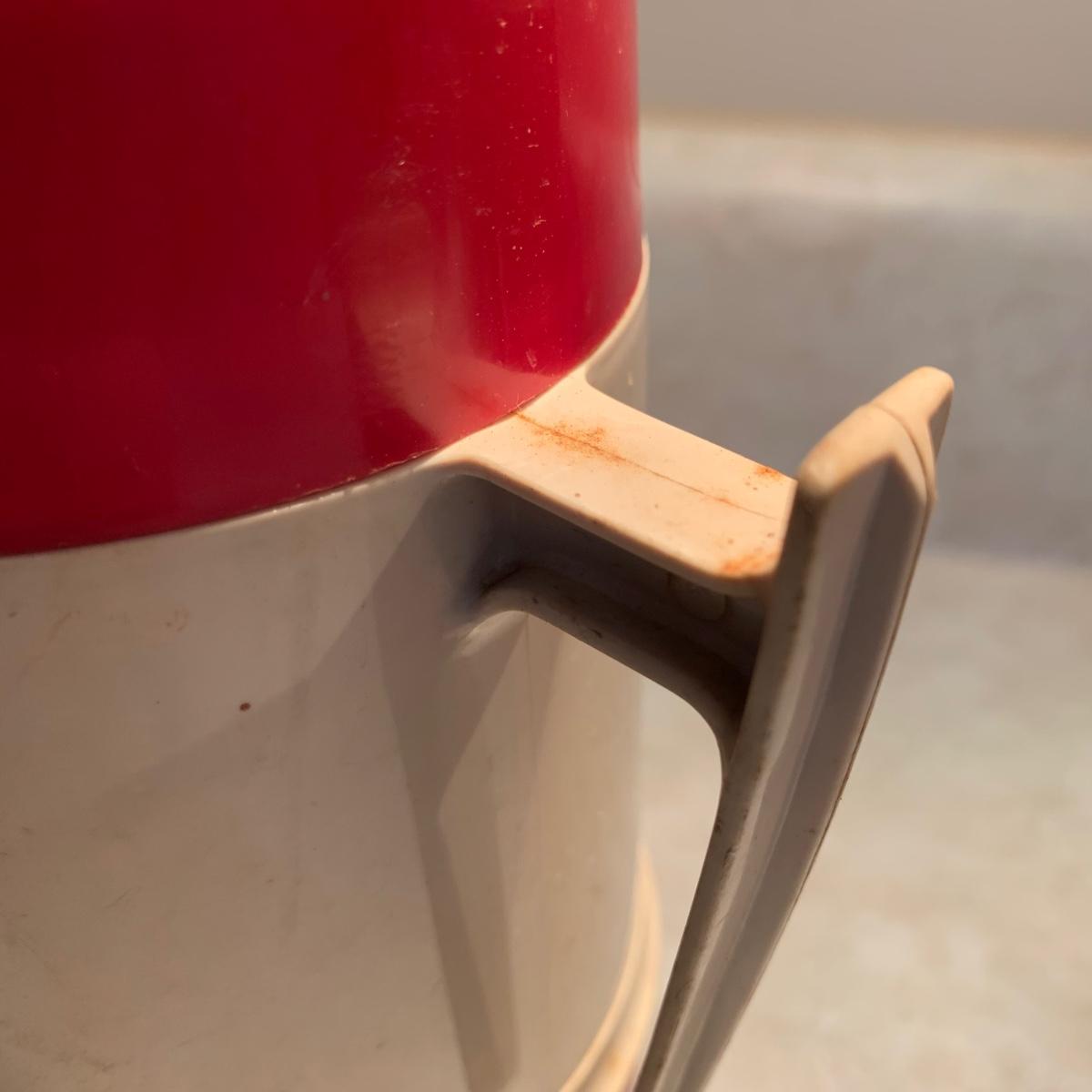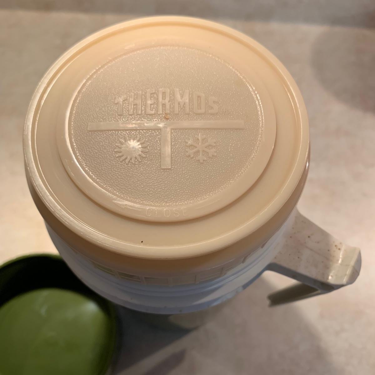Vintage thermos lot includes six Thermos brand mugs and jars, one Aladdin brand Vanguard thermos bottle, and a Thermo Serv Insulated Coffee Maker. Five of the Thermos items are plastic, whereas the red and black one is a metal container. The Aladdin bottle is 12” tall and the small Thermos jars are 3.5” tall. The Thermo Serv Insulated Coffee Maker comes with filters and instructions. The items show some wear due to their age, but otherwise seem to be in very good condition. Shipping available.