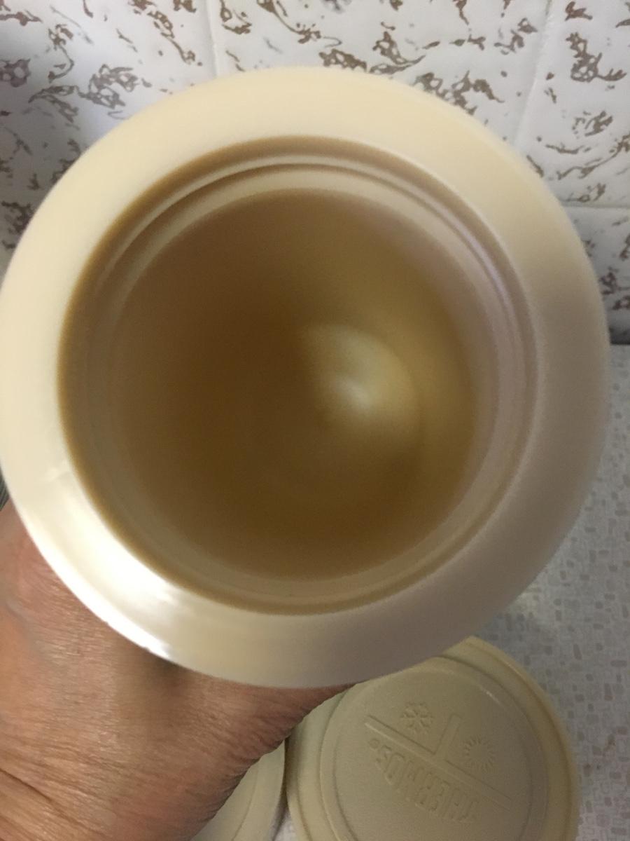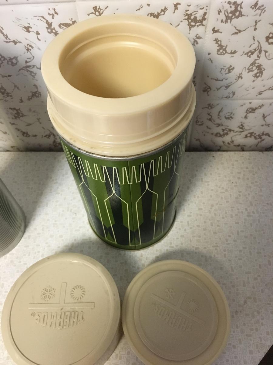 Vintage pint size thermos keeps food hot or cold. Plastic liner and plastic cup. Excellent condition. Just like grandpa had.