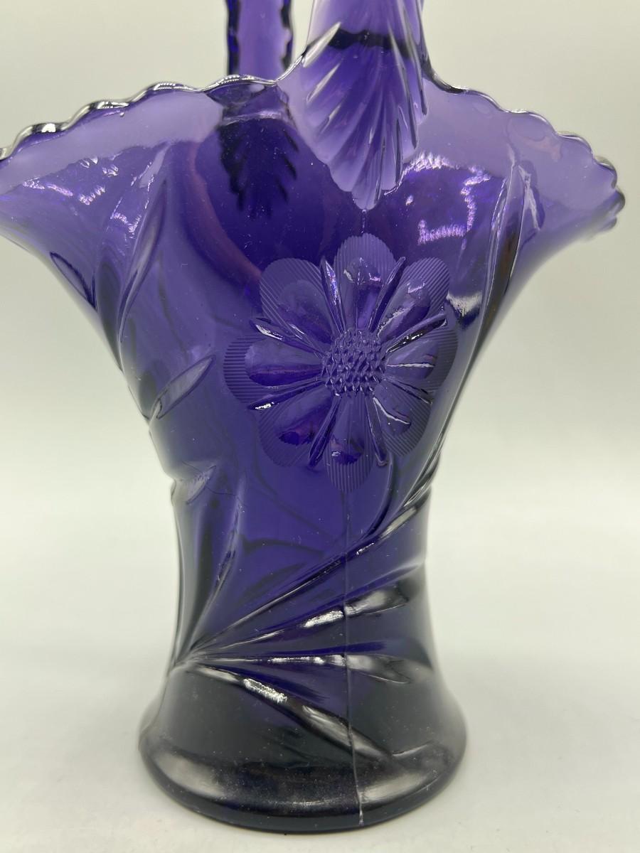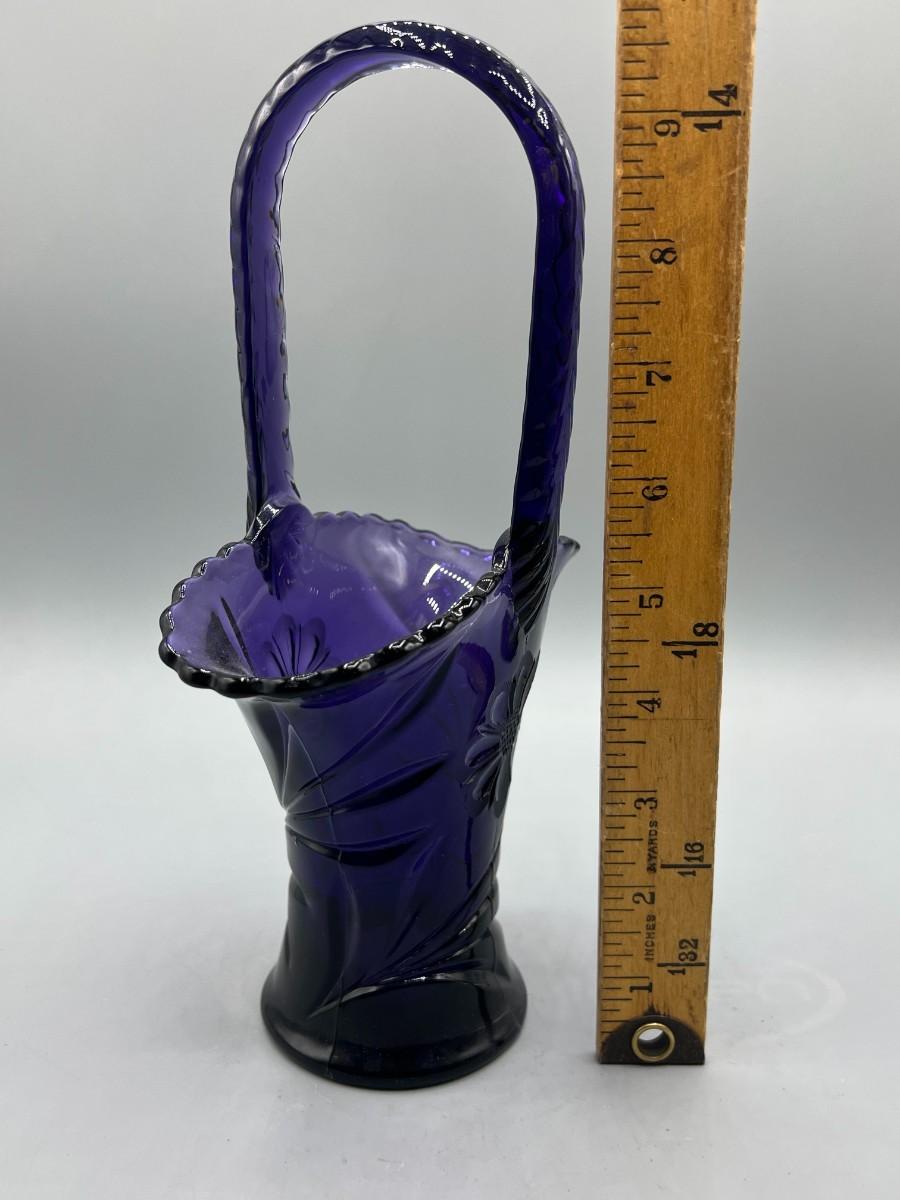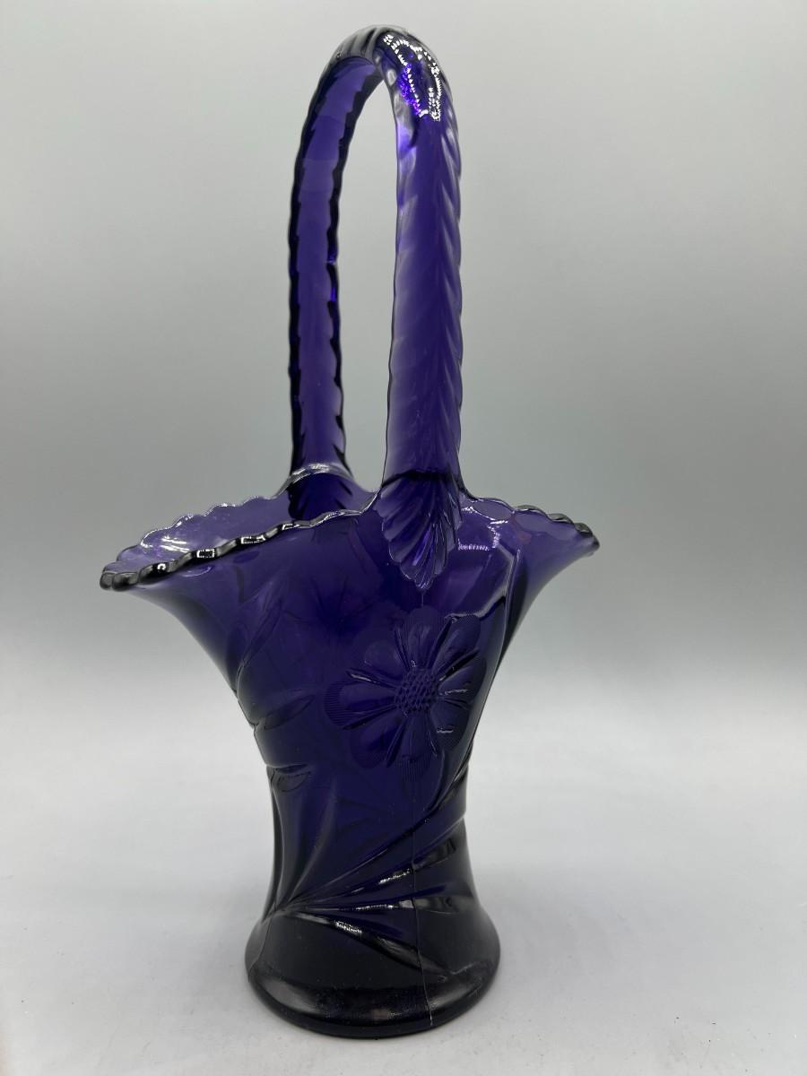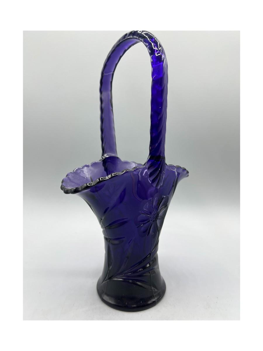 Vintage Thick Art Glass Cobalt Purple Flower Basket Centerpiece Decor