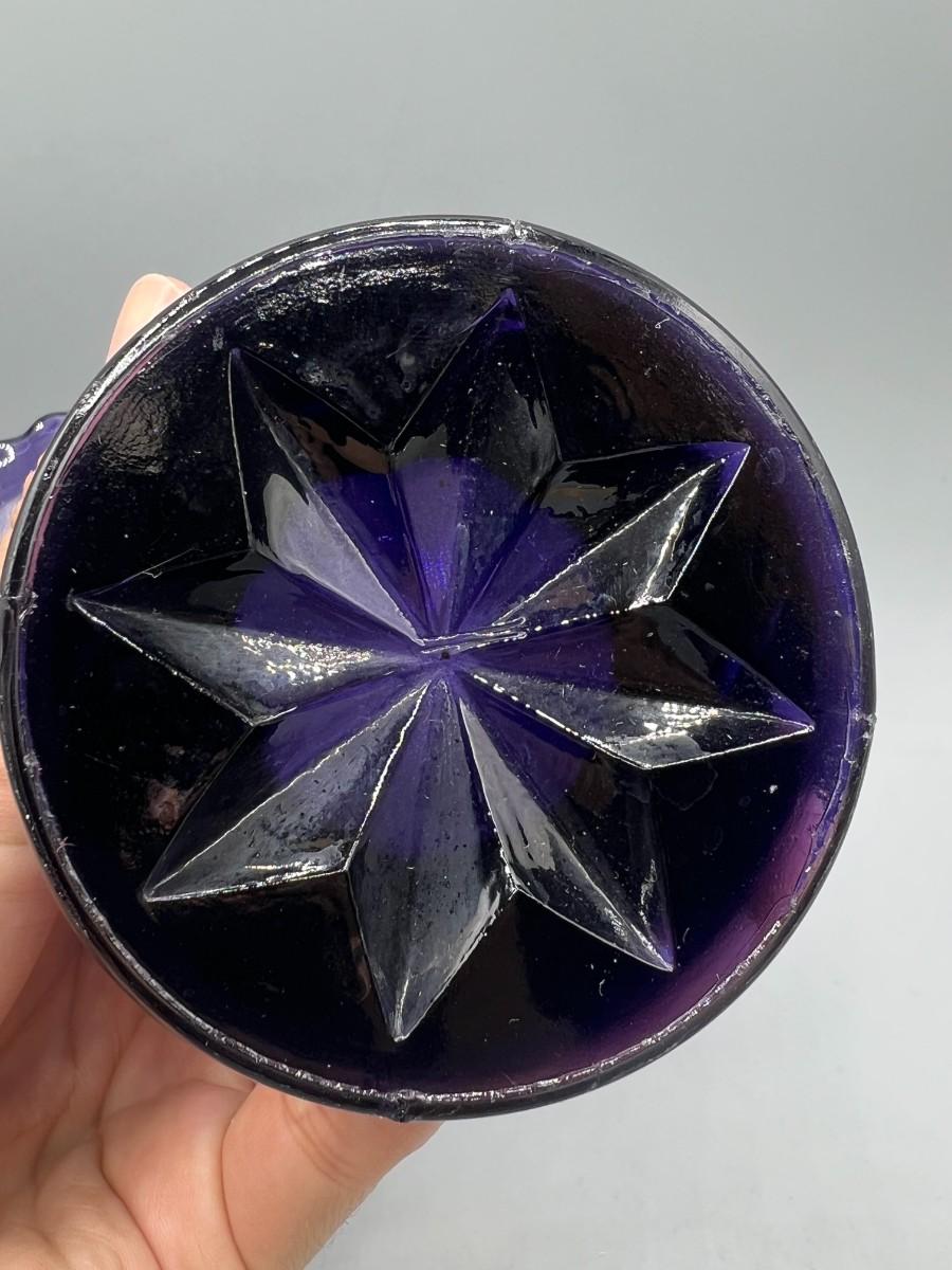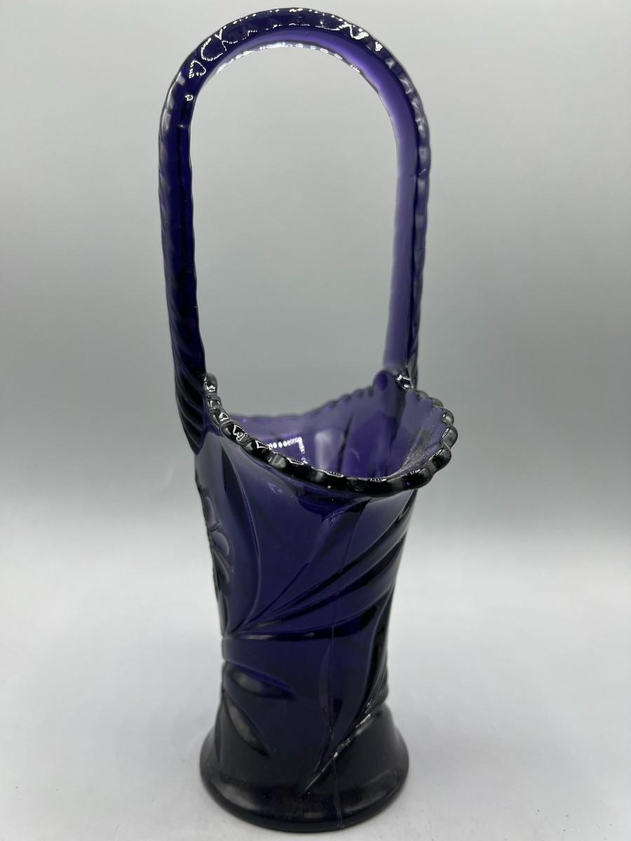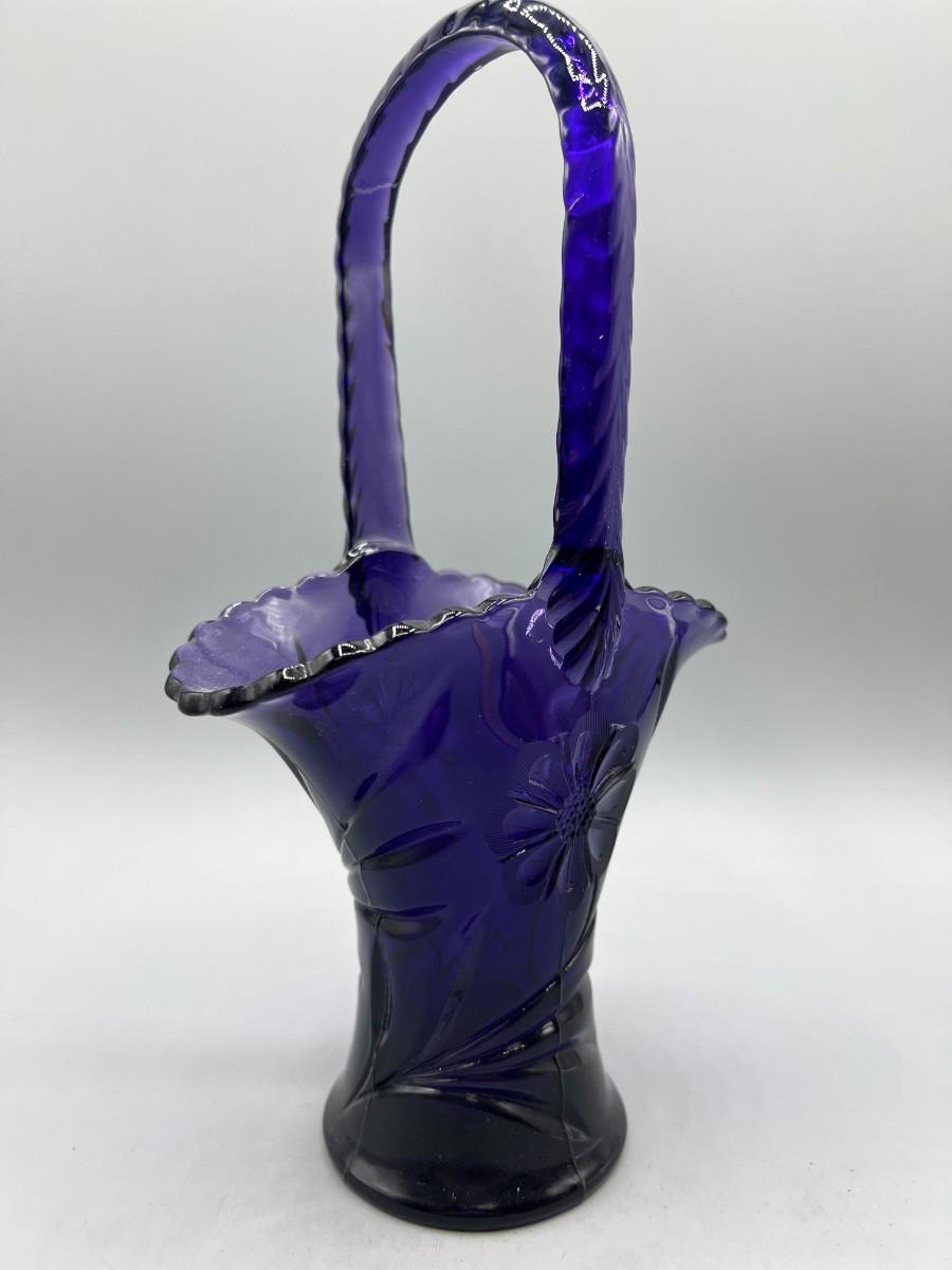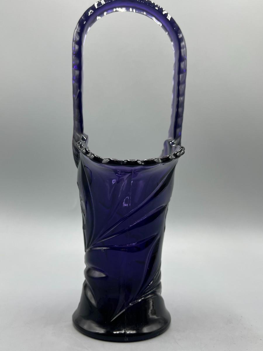Vintage Thick Art Glass Cobalt Purple Flower Basket Centerpiece Decor