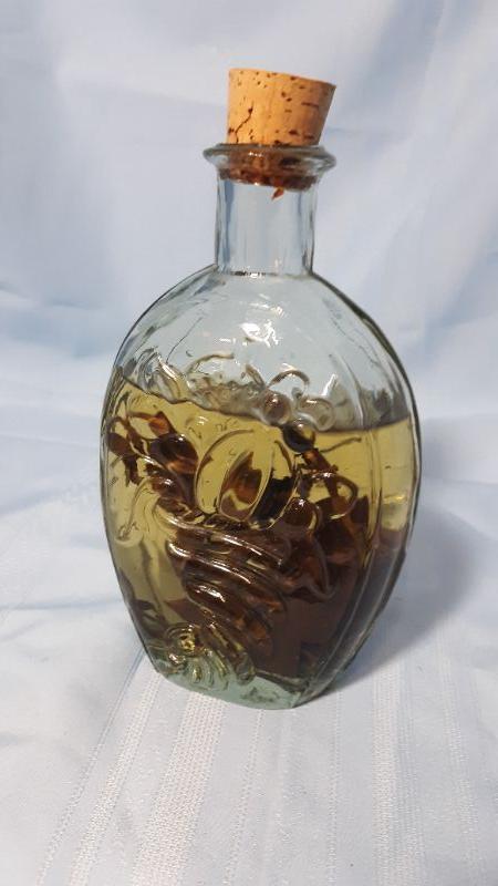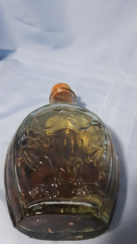 Vintage thick glass jar with cork top, eagle and cornucopia designs