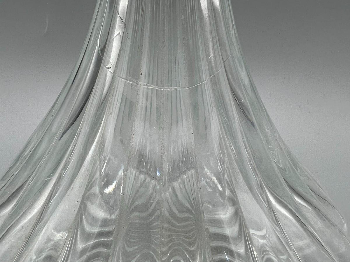 Vintage Thick Glass Whiskey Liquor Decanter, there is a light crack on the side of the decanter and is in good useable condition. Comes with the glass stopper, check pictures for more details and for sizing.