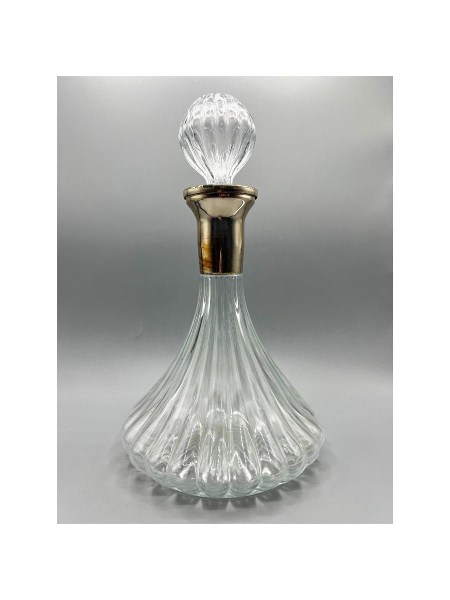 Vintage Thick Ribbed Glass Whiskey Liquor Decanter