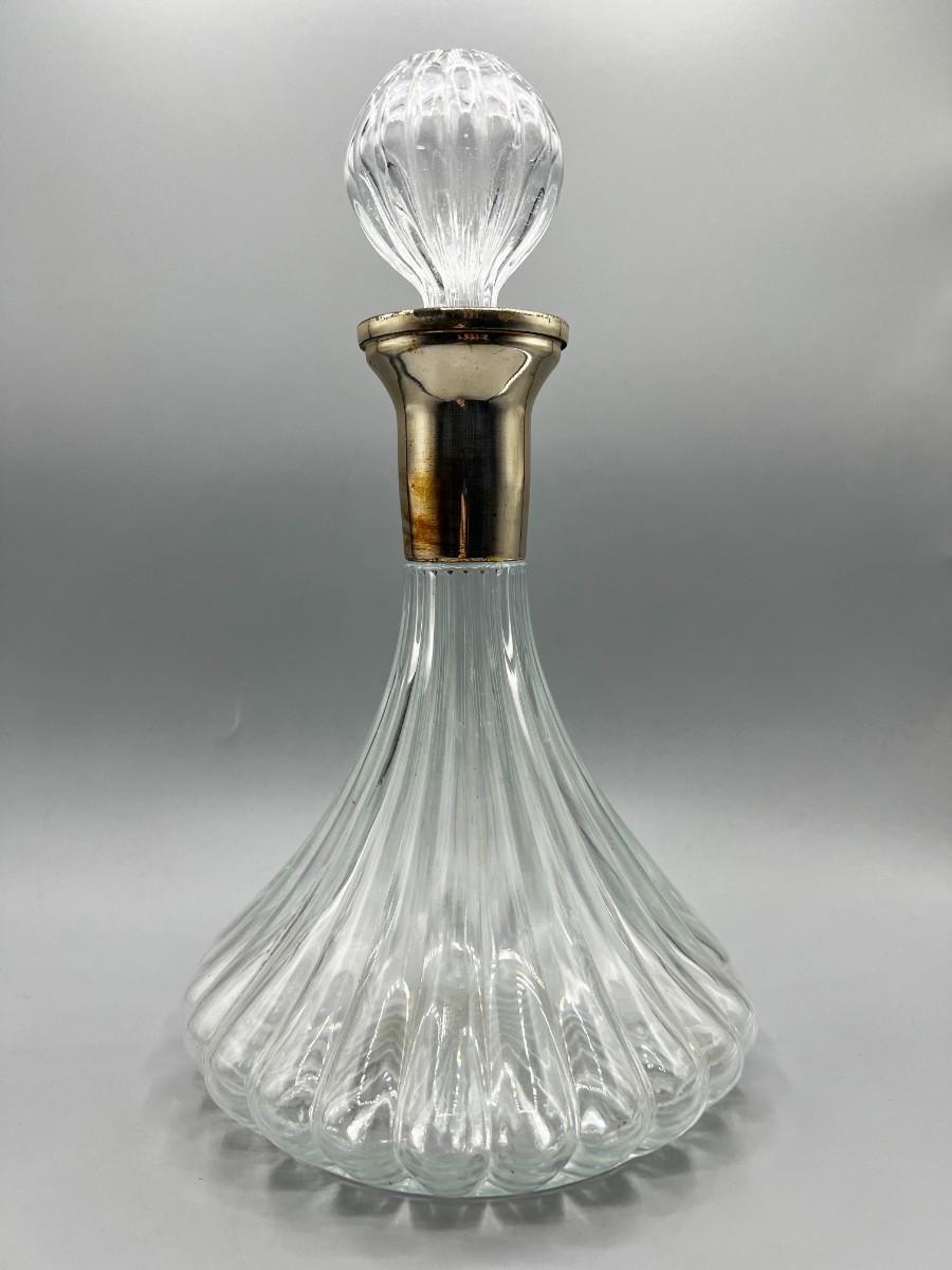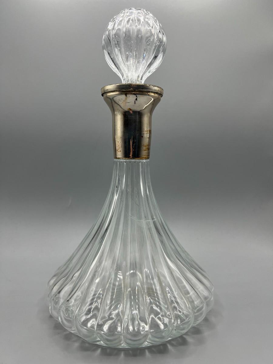 Vintage Thick Ribbed Glass Whiskey Liquor Decanter