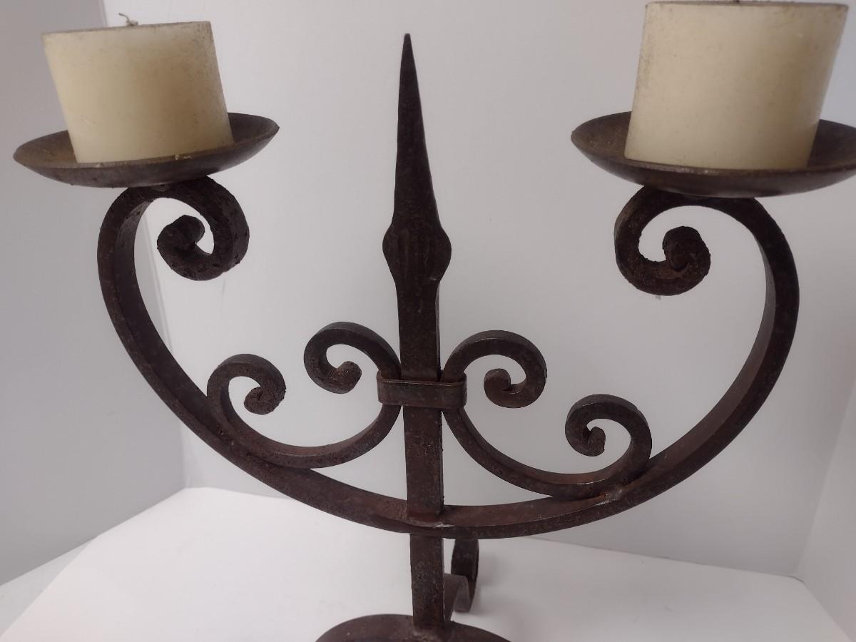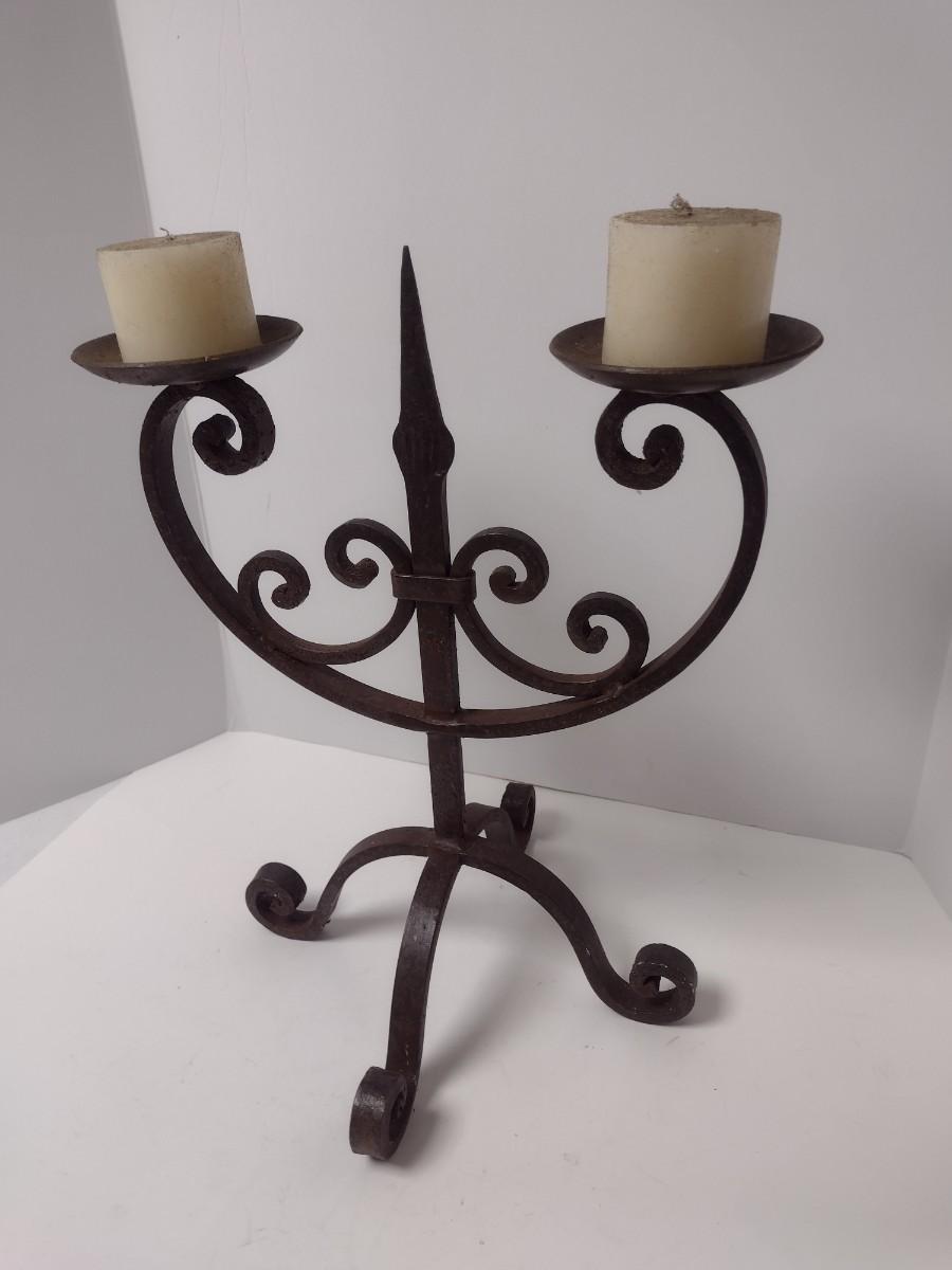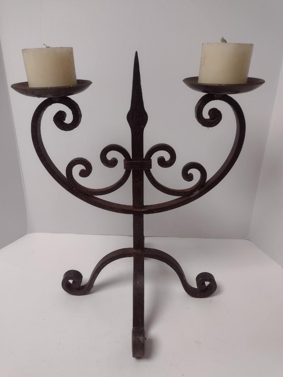 Vintage Thick Wrought Iron Double Arm Candelabra