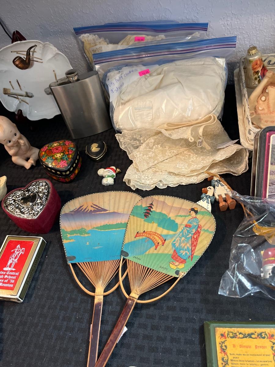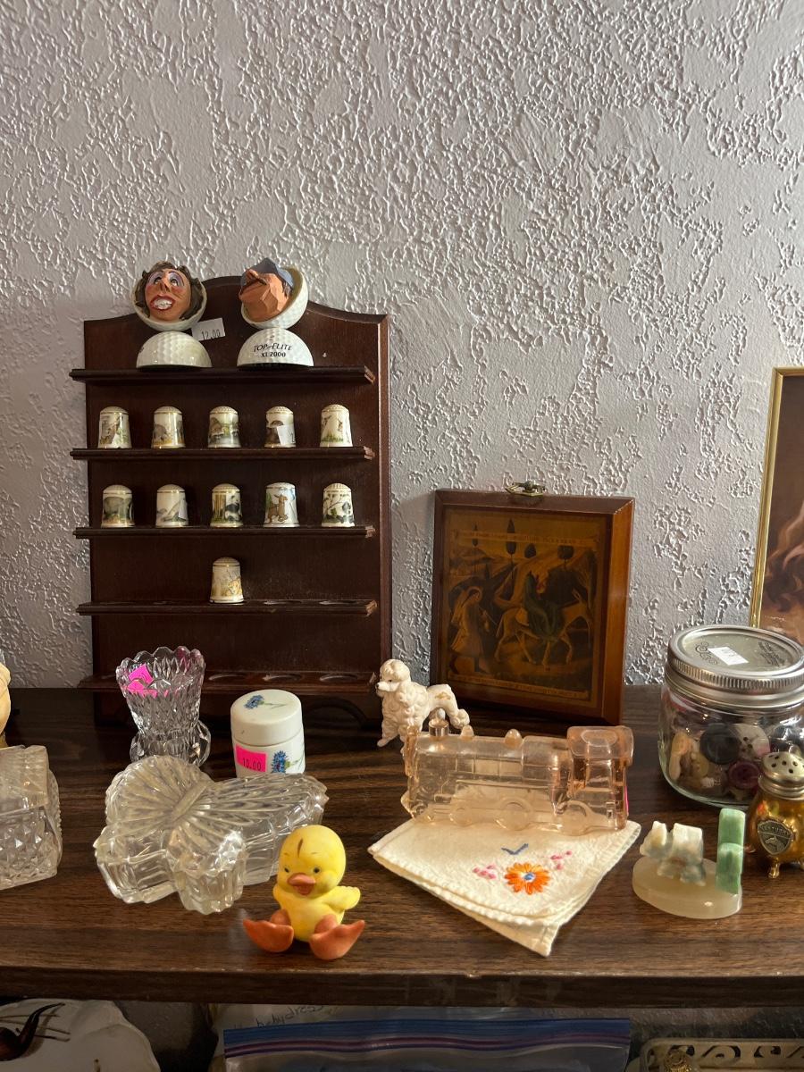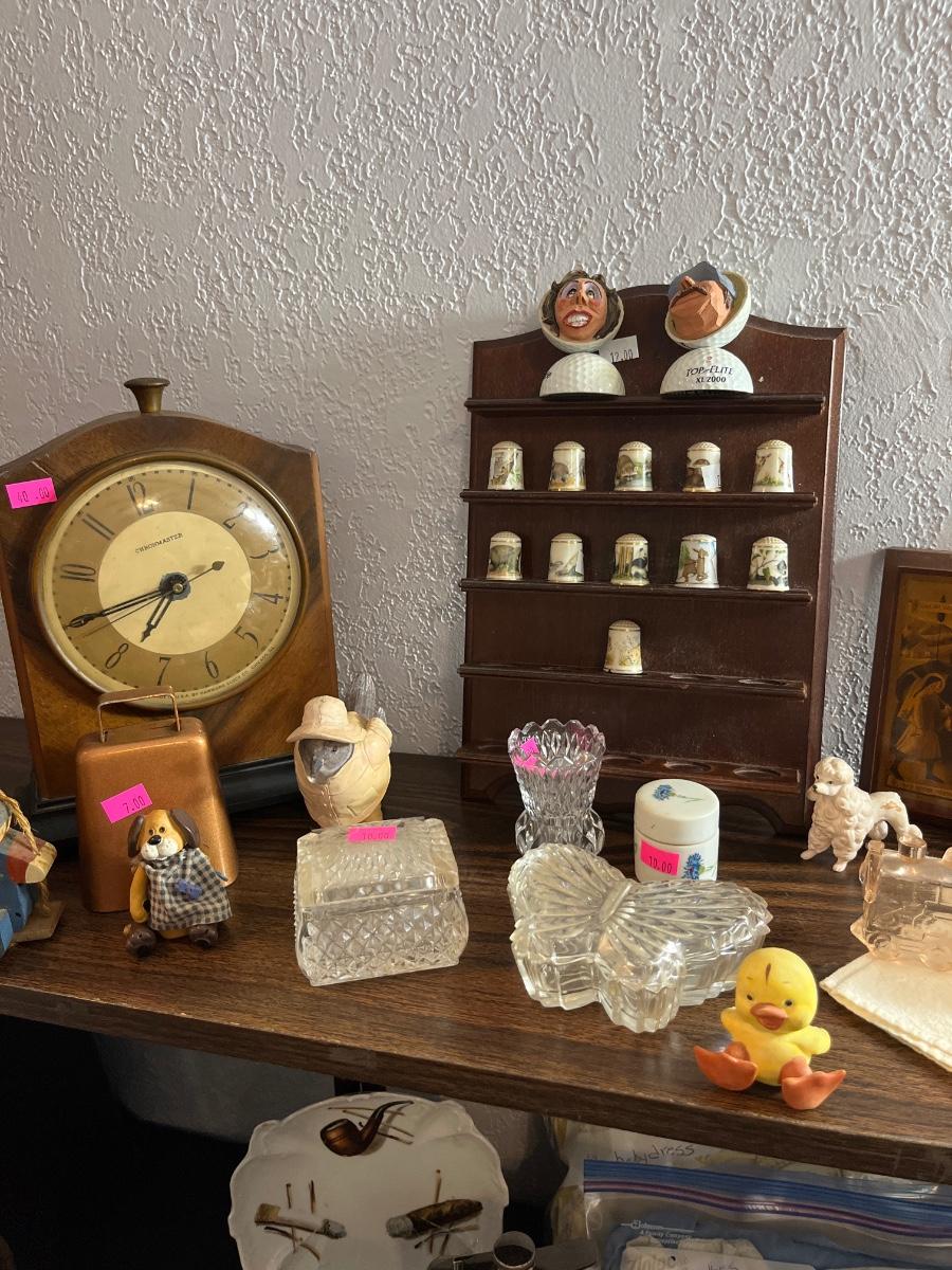 Vintage Thimble, Trinket boxes, Baby Clothes, Clock