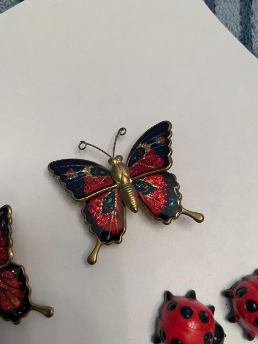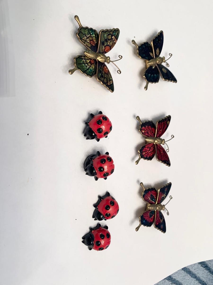 Vintage Thin Metal Butterfly Magnet Lot w/lady bugs