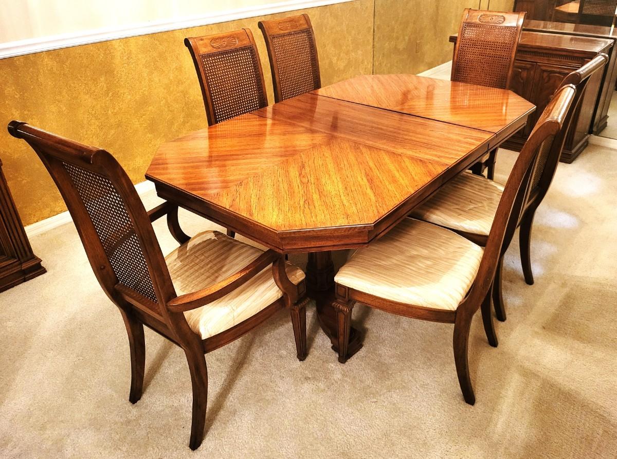 Vintage Thomasville Formal Dinning Table with 6 Chairs and Extension