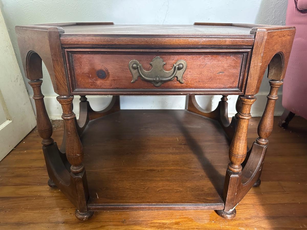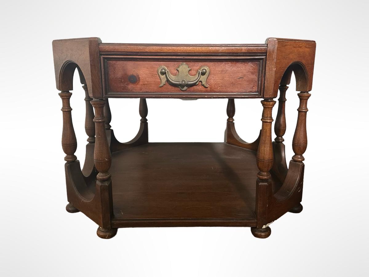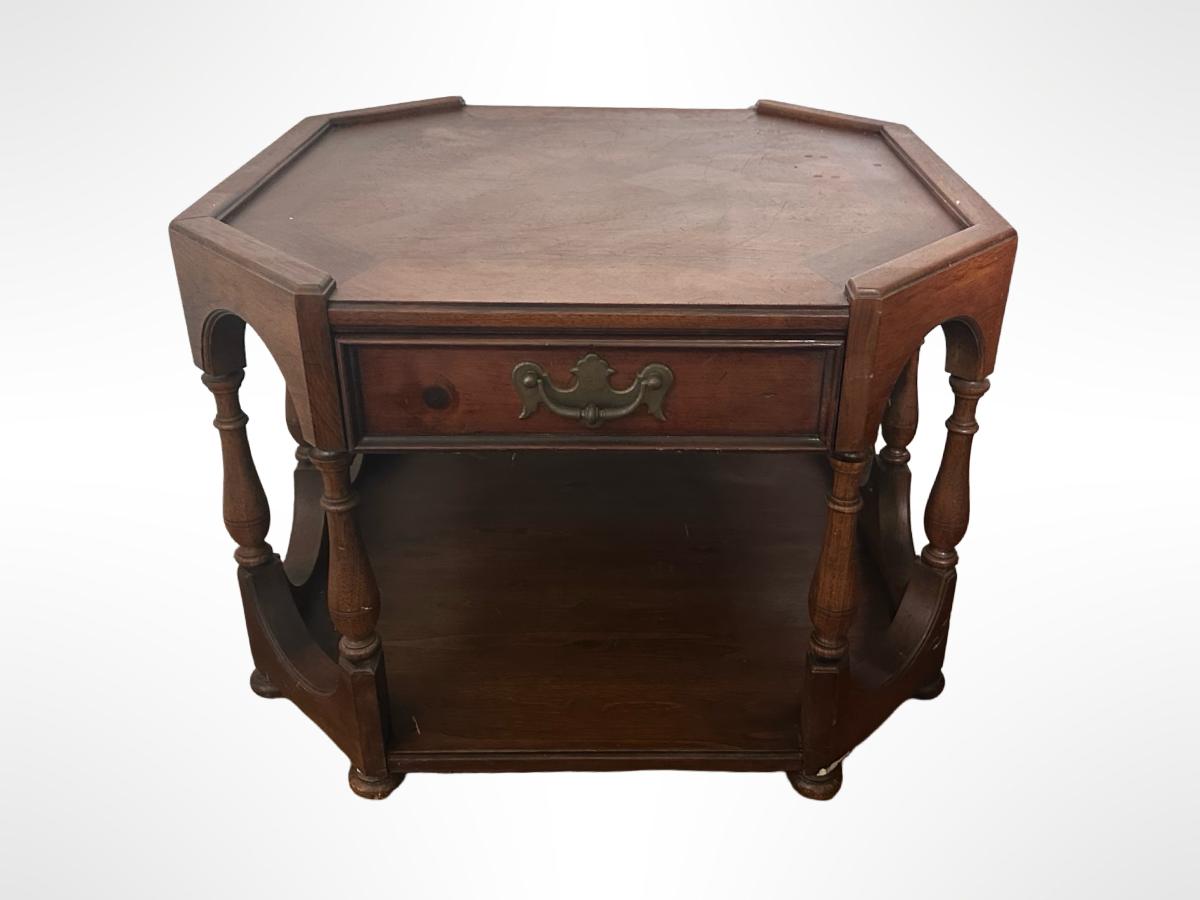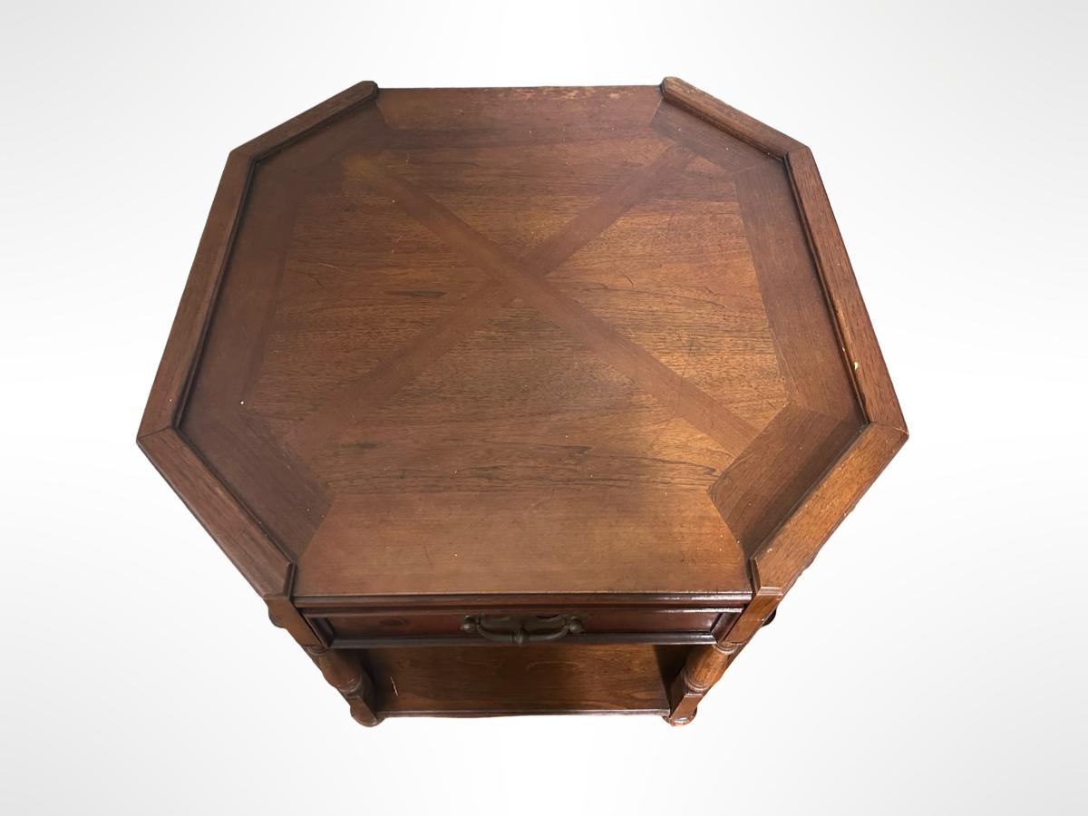 Vintage Thomasville Hexagonal Side Table with Drawer and Shelf
