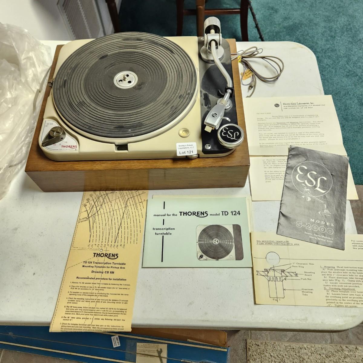 Vintage Thorens TD 124 Turntable w ESL s-2000 tonearm powers up turntable turns working