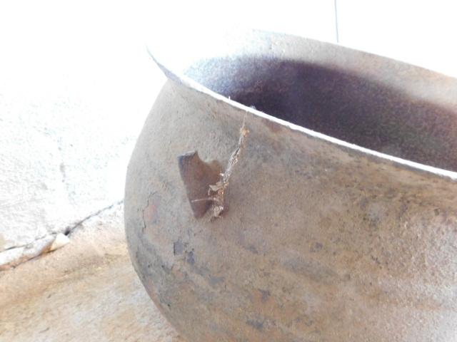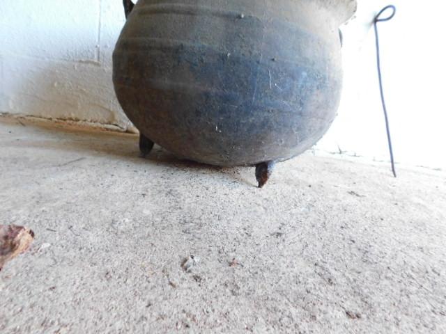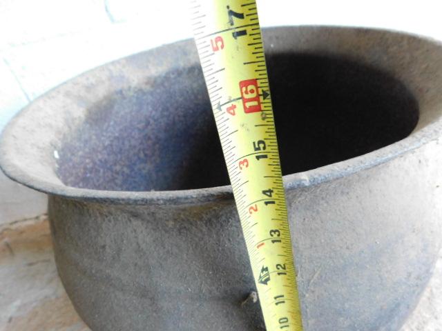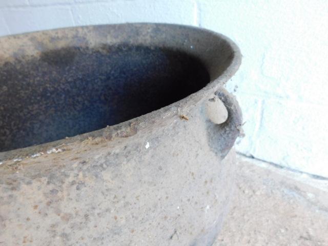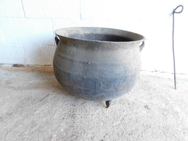 Vintage Three Leg Cast Iron Kettle 17"x14" has one broken handle as shown. No apparent holes