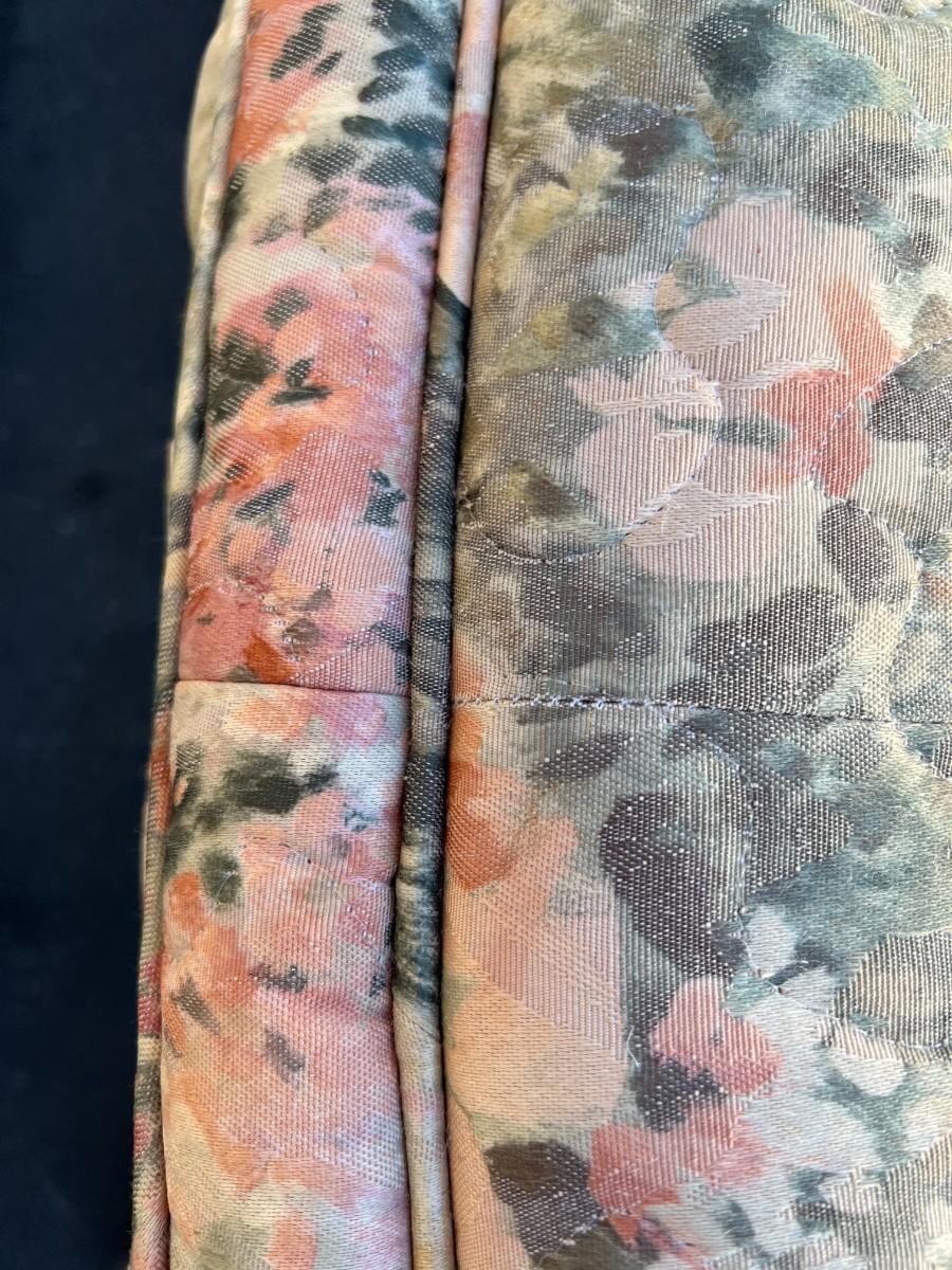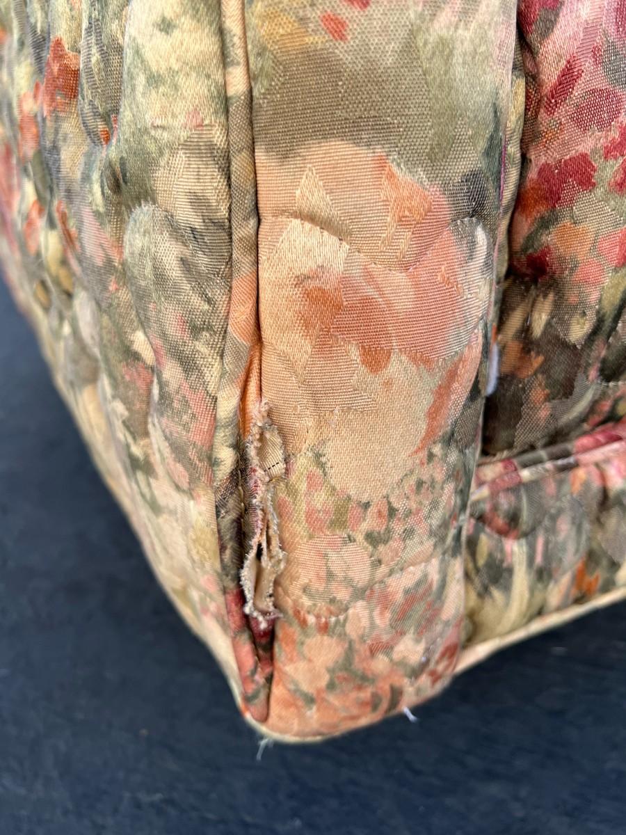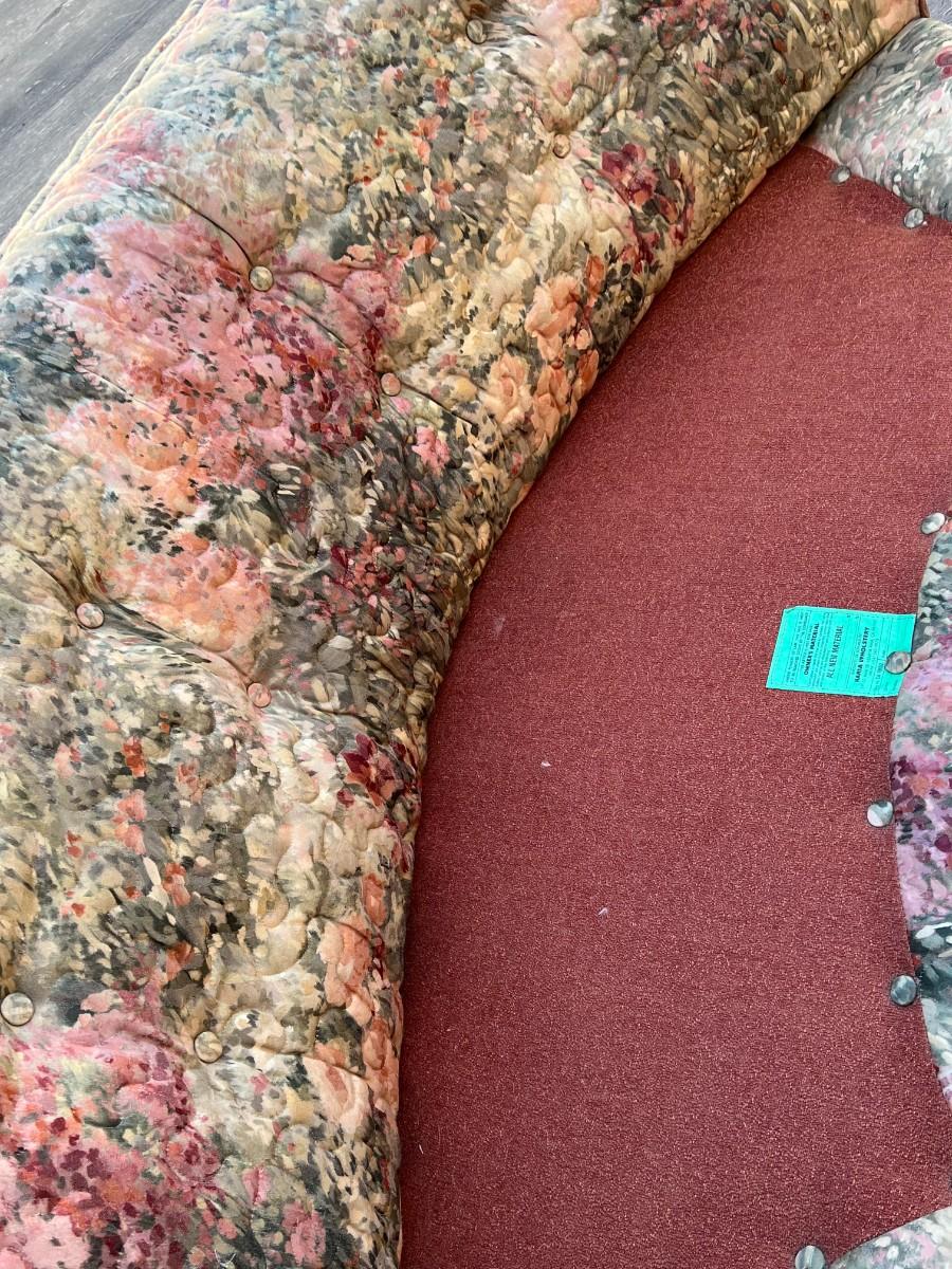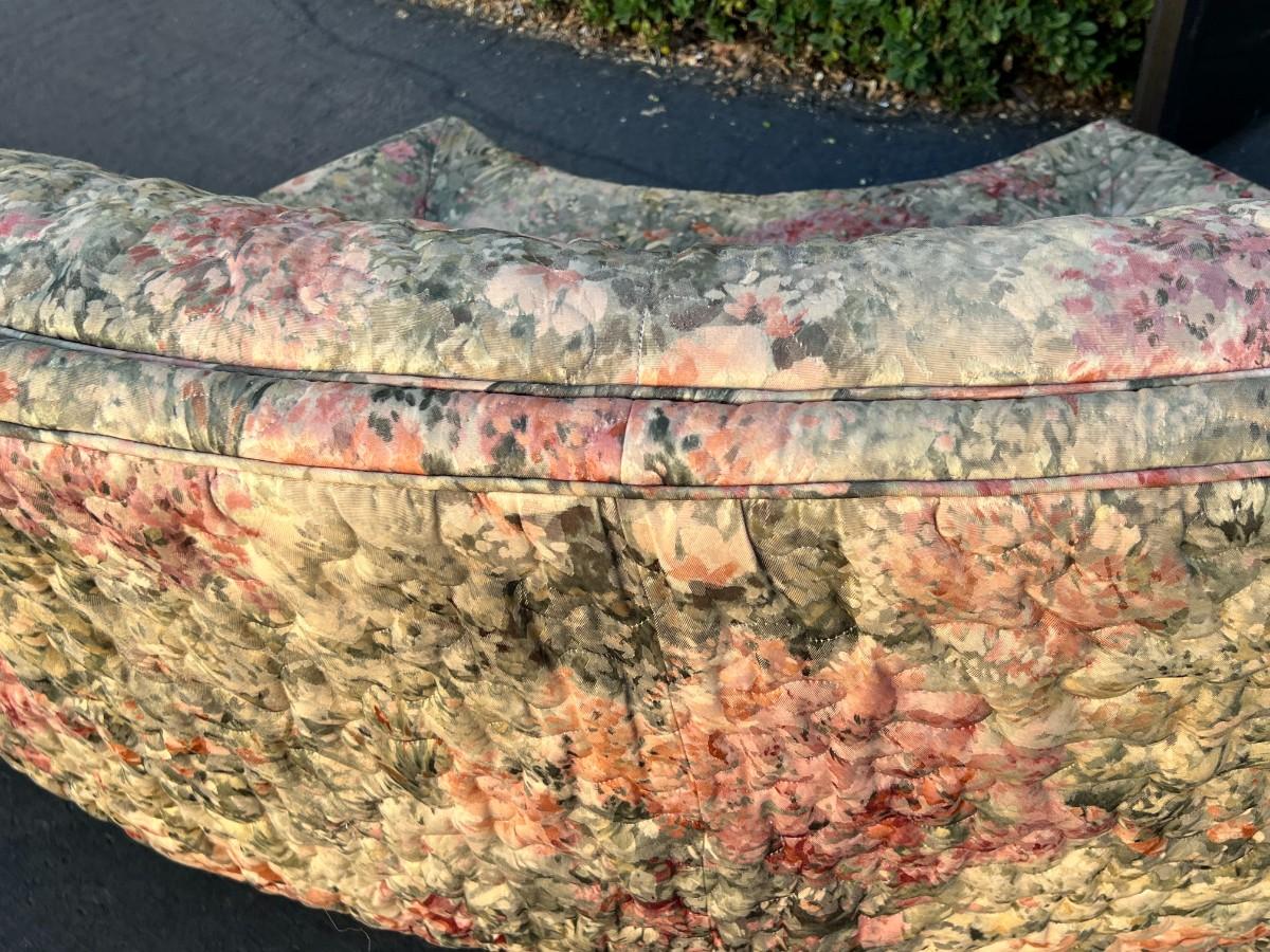 Vintage Three Piece Sectional Low Profile Floral Couch. Not the original upholstery there is tags under cushion with the company that did the reupholstery. Looks maybe 1960s-ish by the shape. In good condition, only one spot on lower corner seam. Sturdy frame, you do sink a little into the seat cushions, the cushions are not firm.