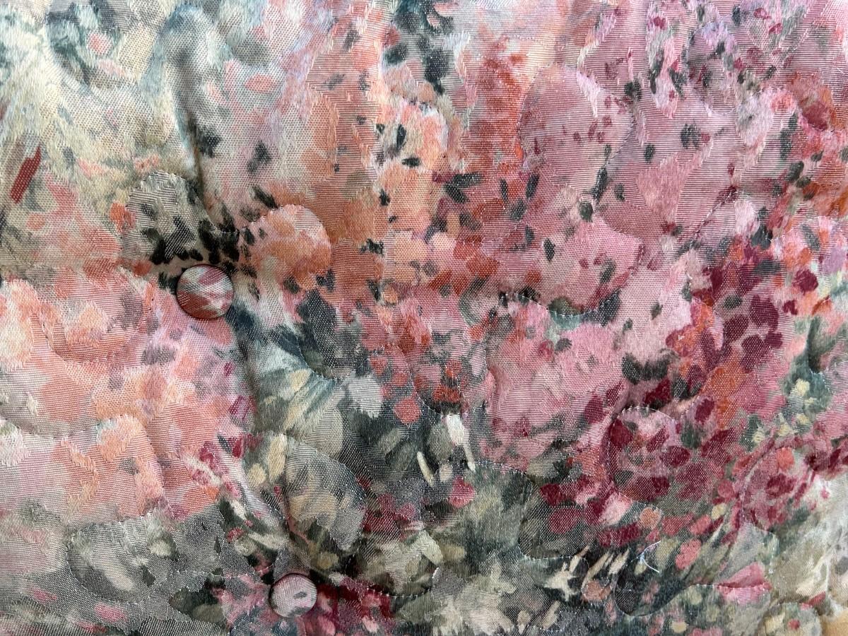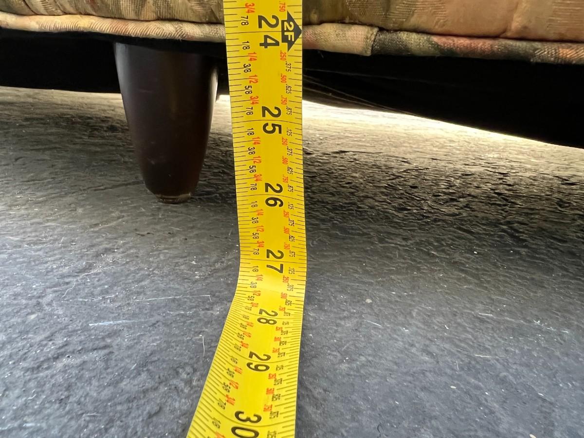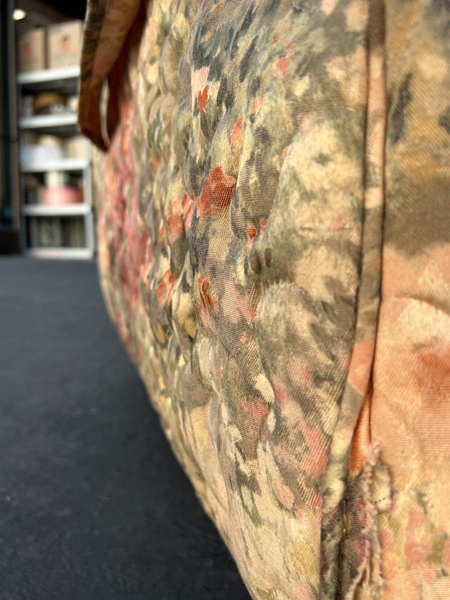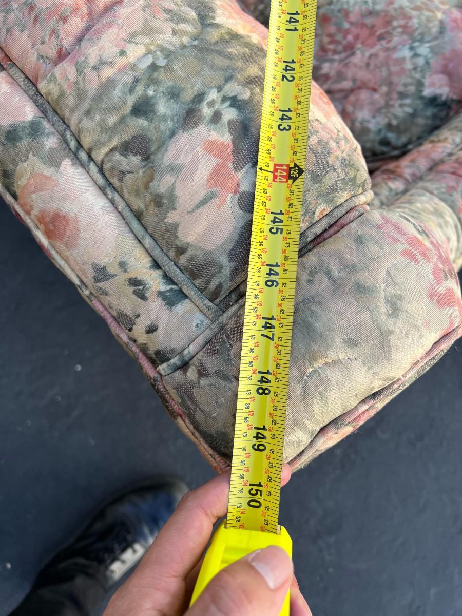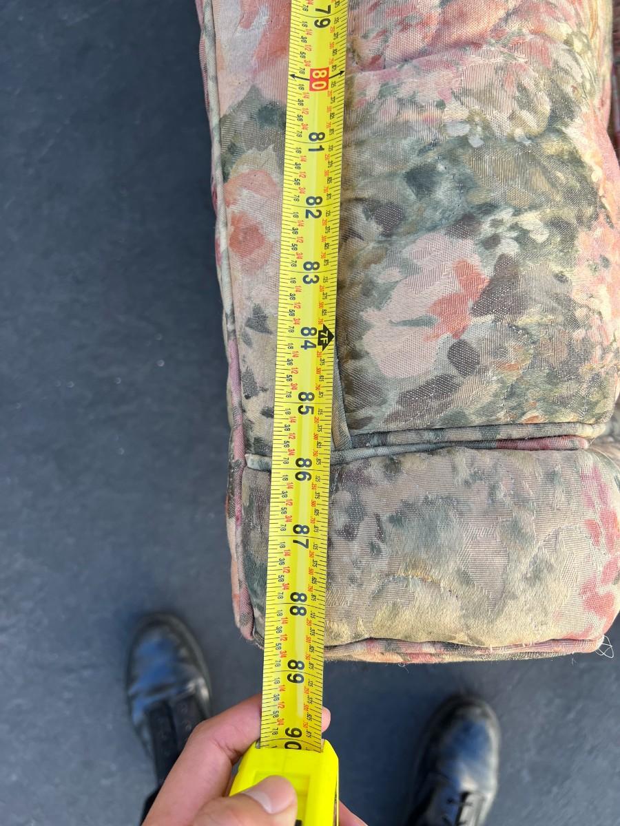 Vintage Three Piece Sectional Low Profile Floral Couch. Not the original upholstery there is tags under cushion with the company that did the reupholstery. Looks maybe 1960s-ish by the shape. In good condition, only one spot on lower corner seam. Sturdy frame, you do sink a little into the seat cushions, the cushions are not firm.
