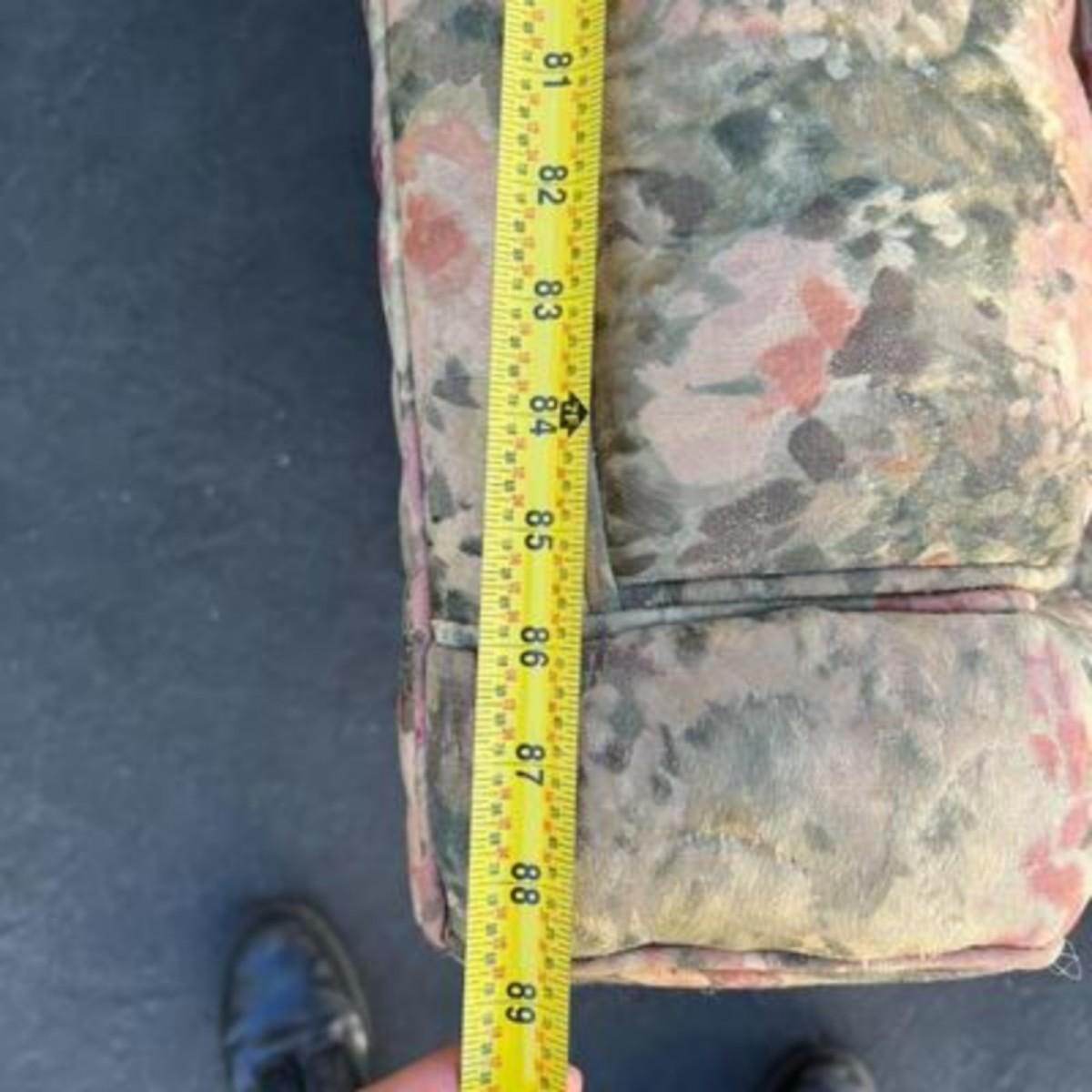 Vintage Three Piece Sectional Low Profile Floral Couch. Not the original upholstery there is tags under cushion with the company that did the reupholstery. Looks maybe 1960s-ish by the shape. In good condition, only one spot on lower corner seam. Sturdy frame, you do sink a little into the seat cushions, the cushions are not firm.