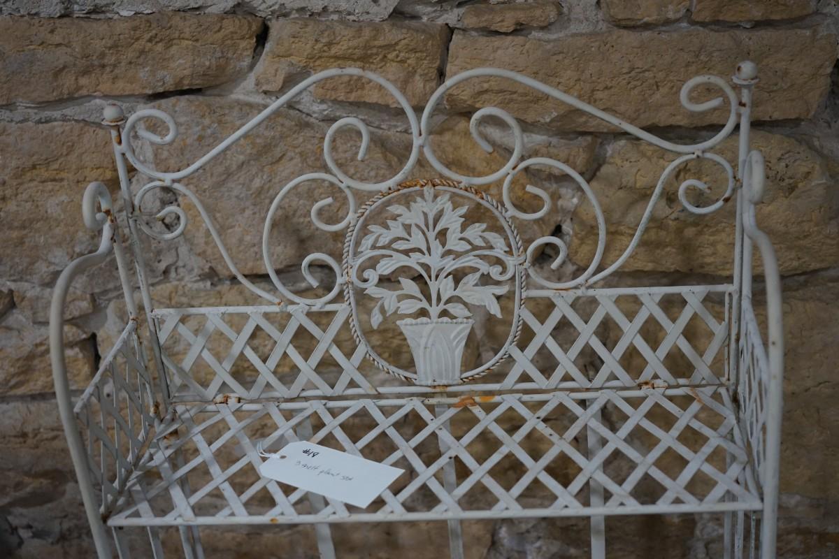 VINTAGE THREE SHELF PAINTED WHITE METAL PLANT STAND WITH POTTED PLANT CUT OUT. VERY SWEET