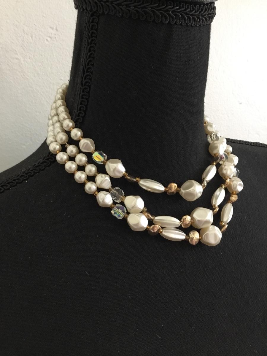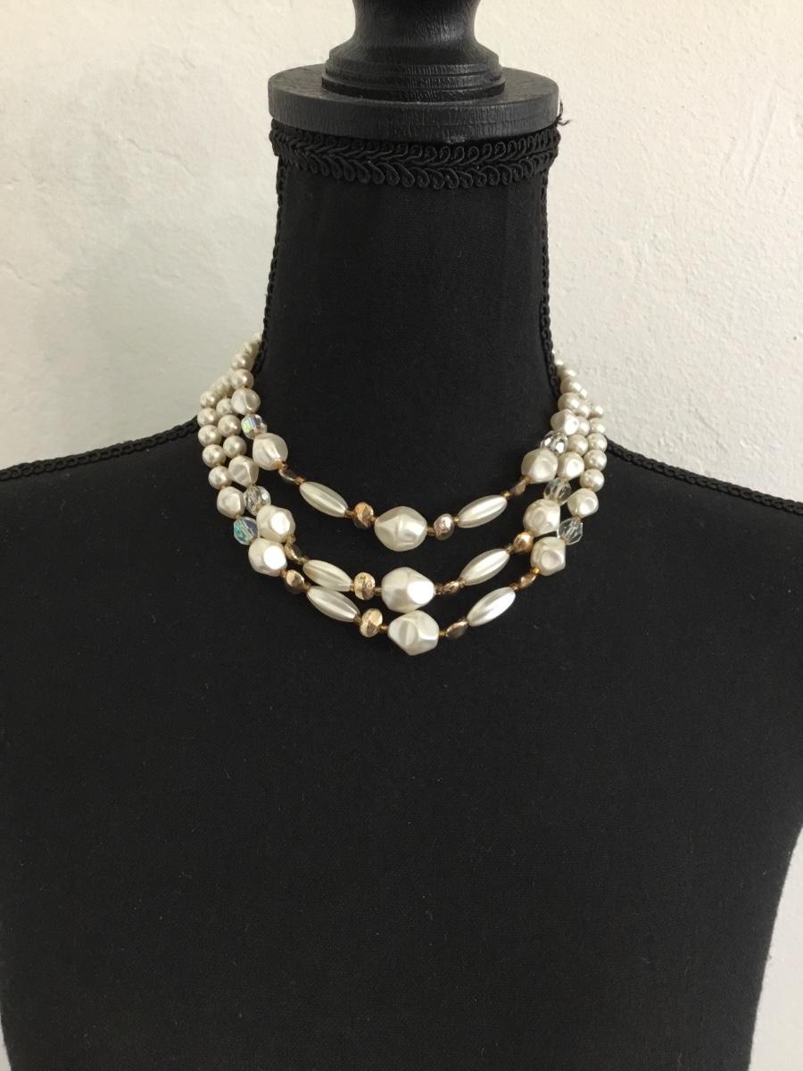Vintage three strand beaded necklace