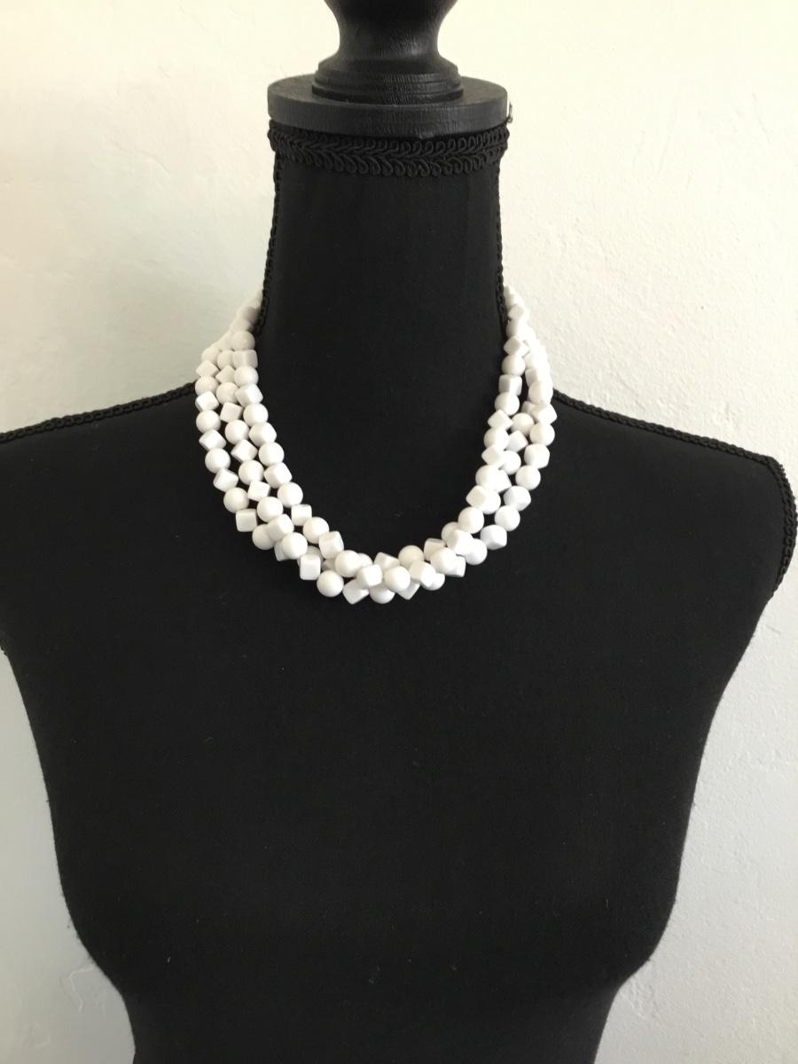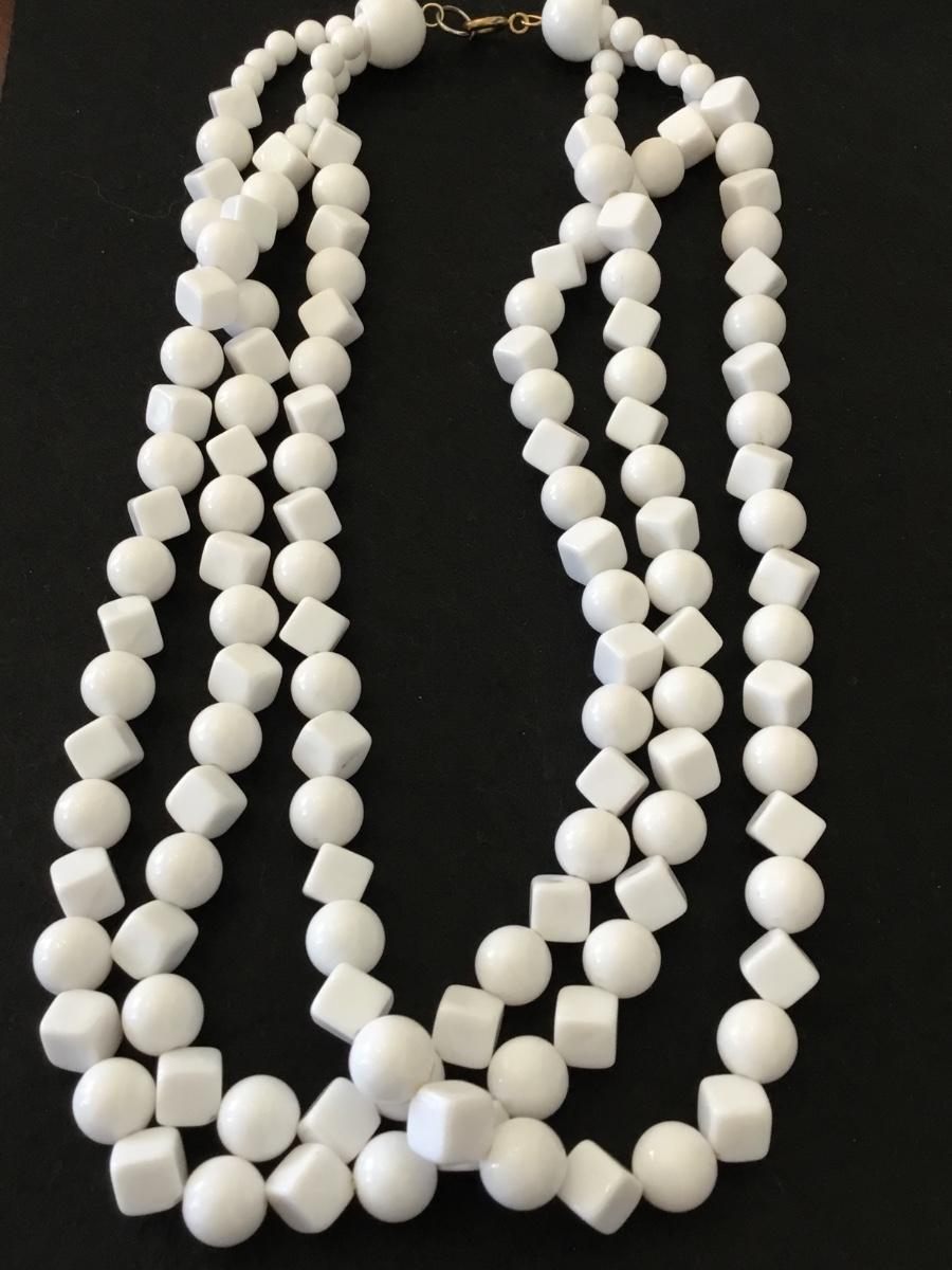 Vintage three strand white beaded fashion necklace