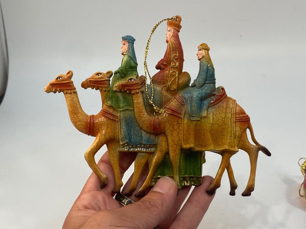 Vintage Three Wise Men and Colorful Glass Pendant Style Christmas Tree Ornament