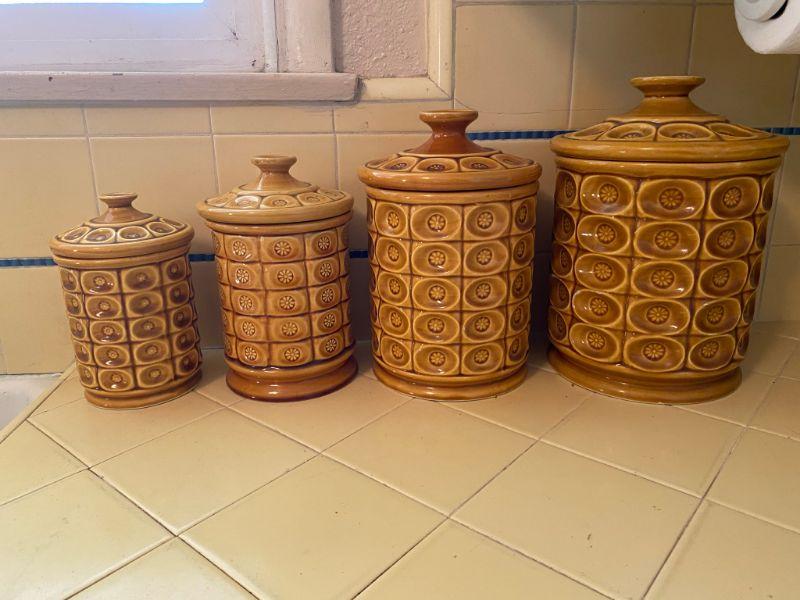 Vintage Thumbprint Pottery 4 Piece Canister Set YD#019-0004