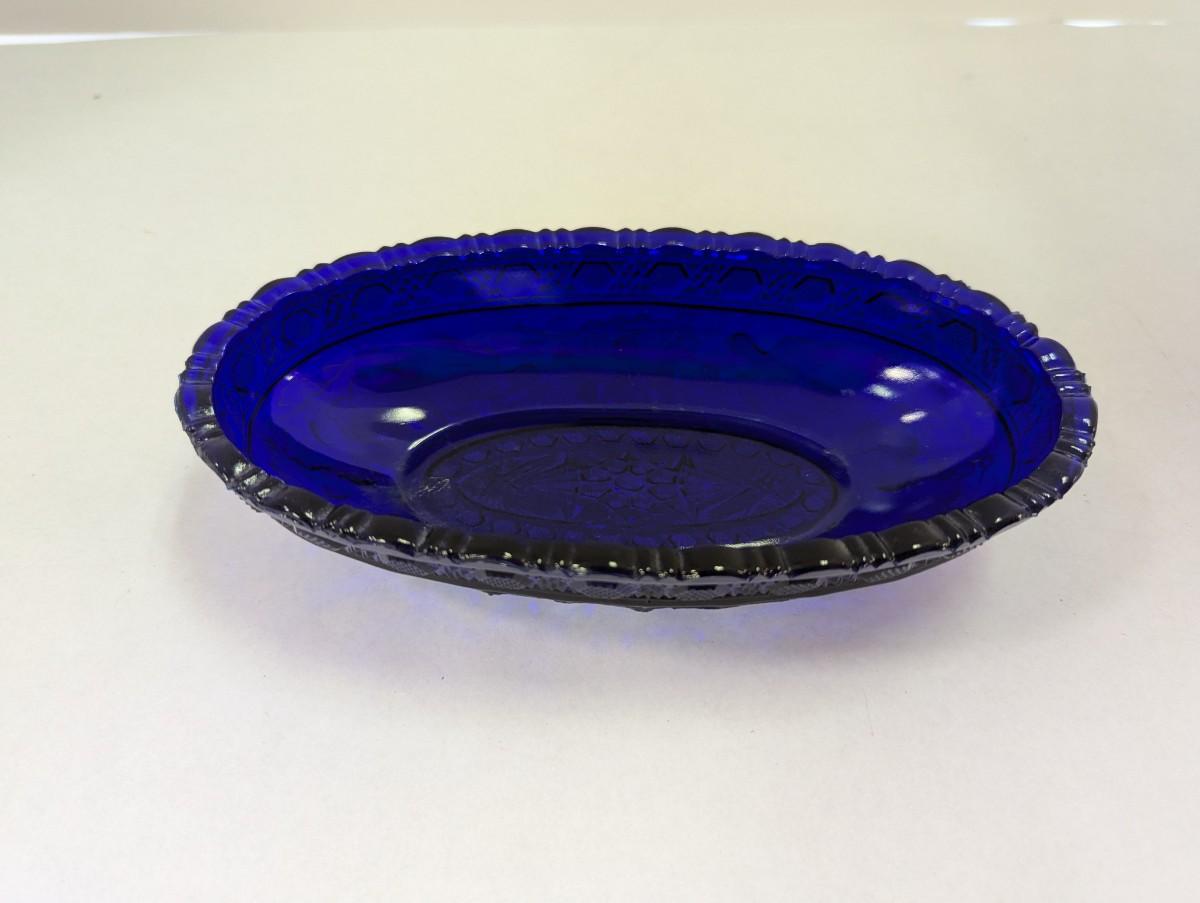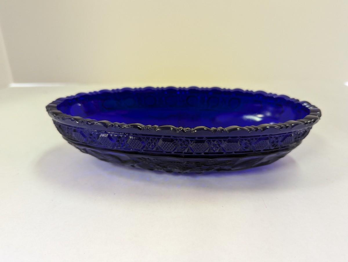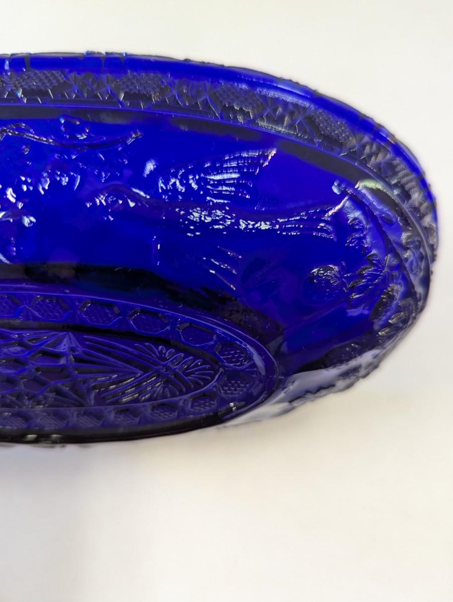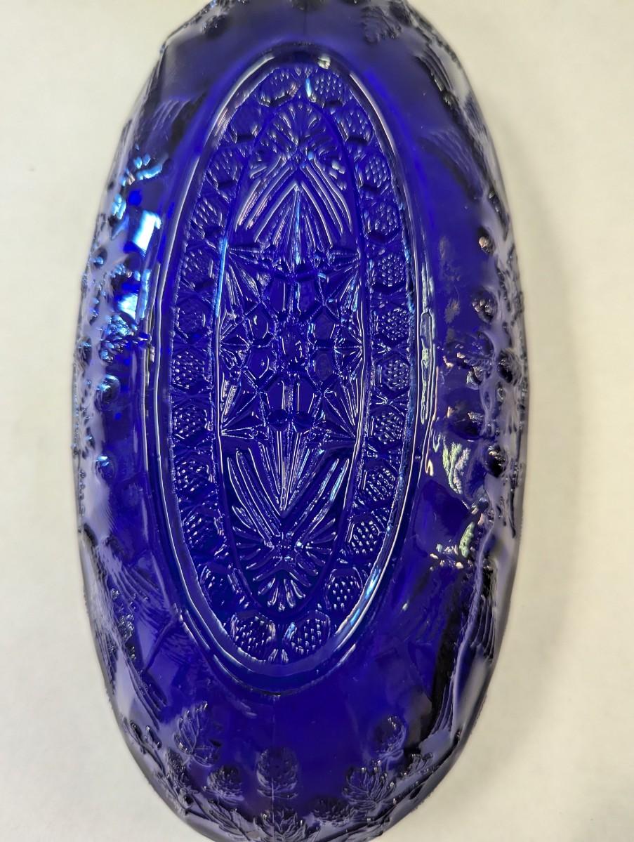 Vintage Tiara Exclusive Indiana Glass Blue Bird Oval Bowl Relish Dish Cobalt Blue