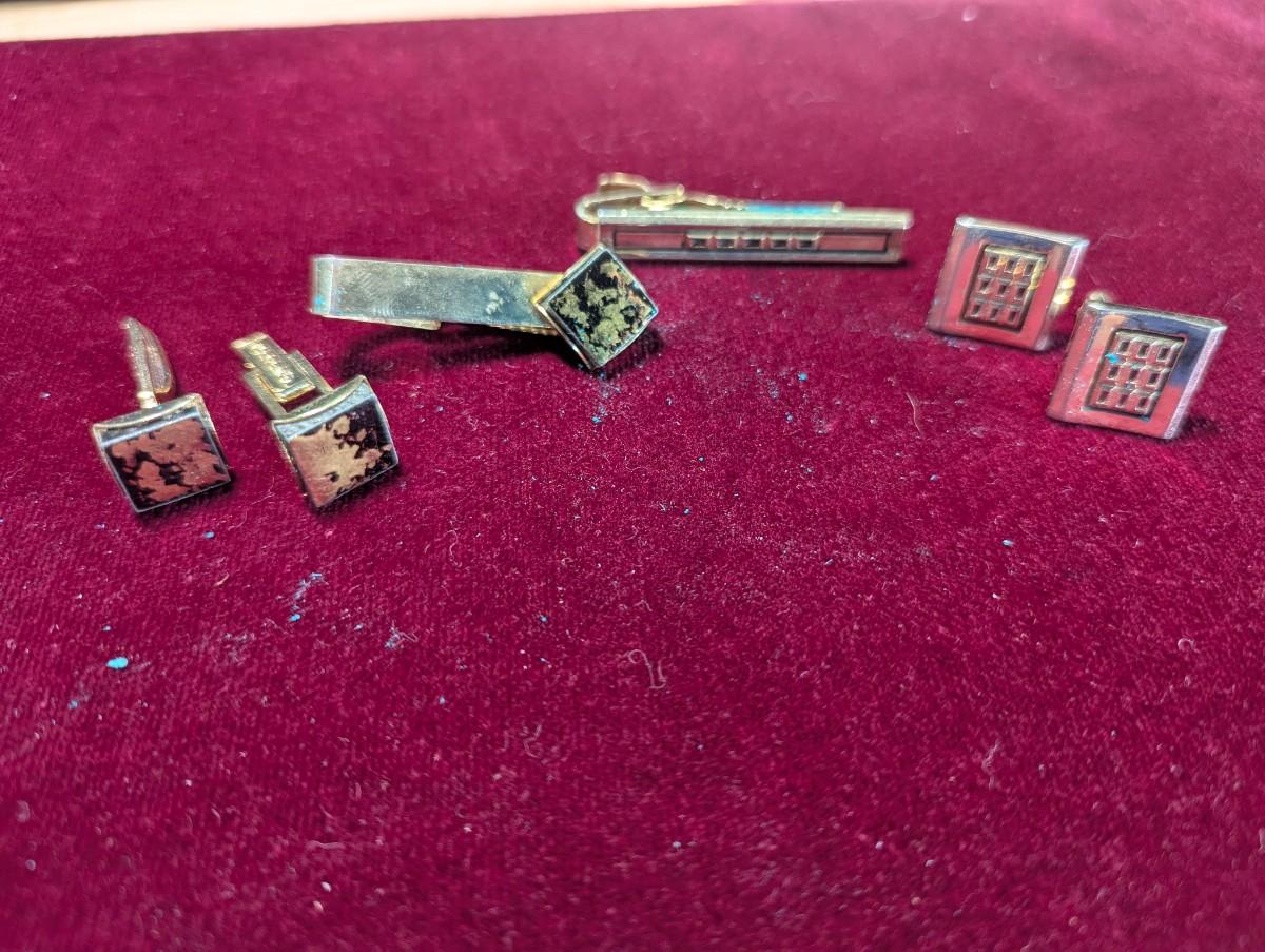 Vintage Tie Clasp & Matching Cuff Links #15