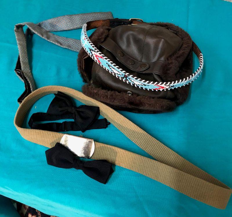 Vintage bowties...web and beaded belts and a men's winter hat...as shown...