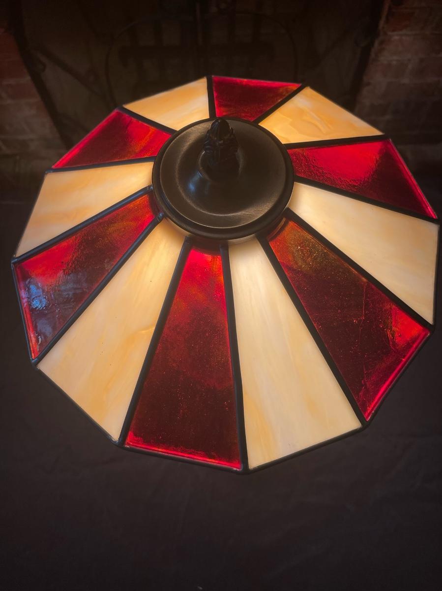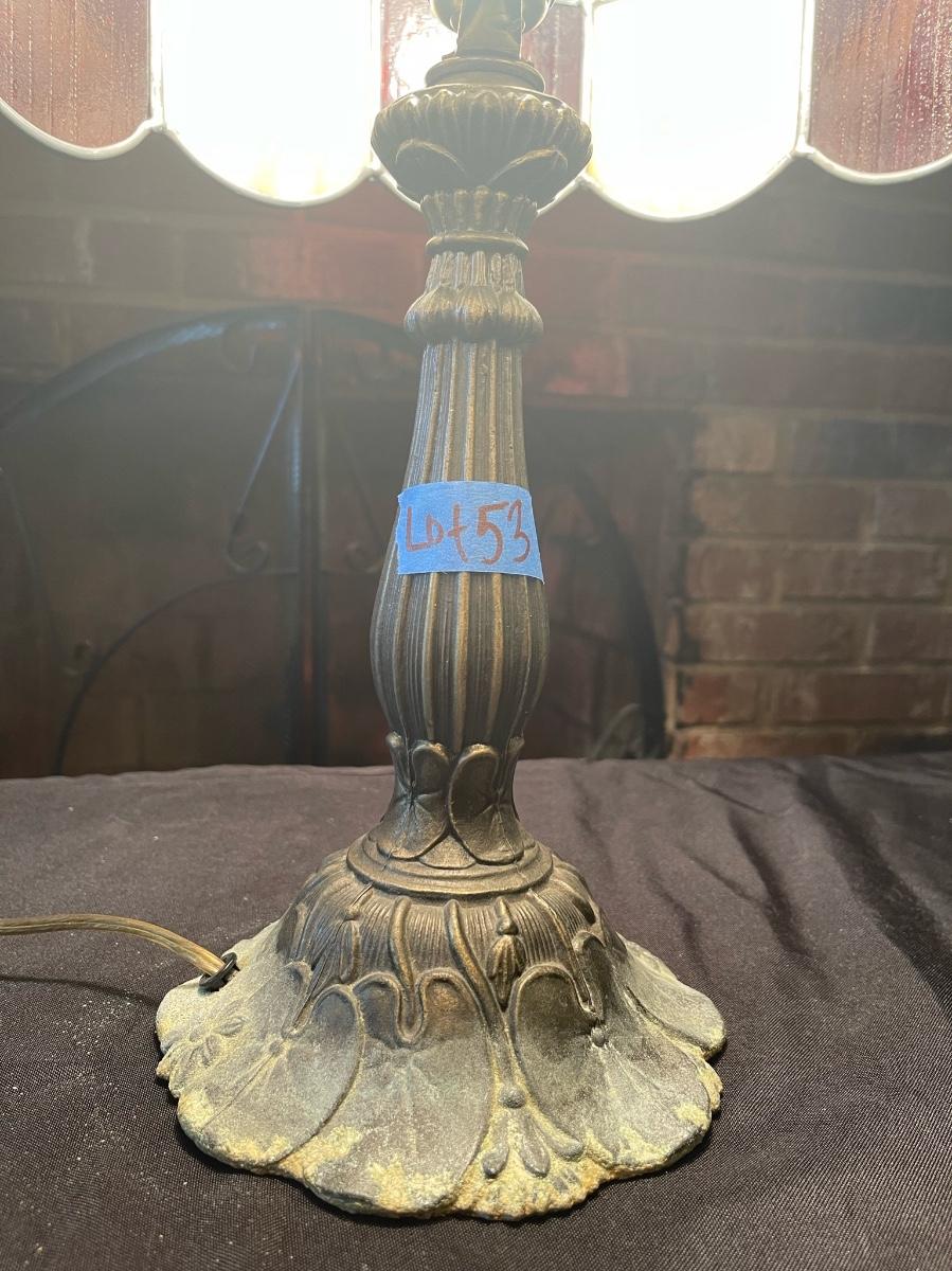 Gorgeous vintage tiffany inspired lamp with metal base. (21"t x 16"w)