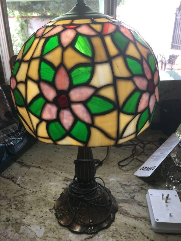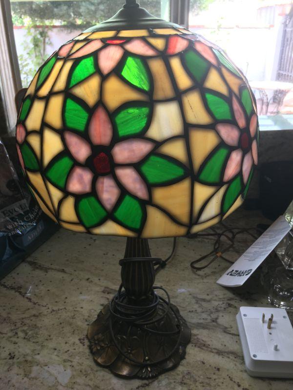 In working conditions, VG conditions, measures up to the finial 23" and the shade has a diameter of 12".