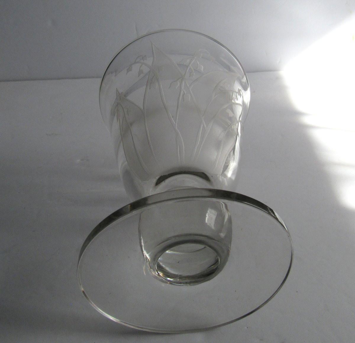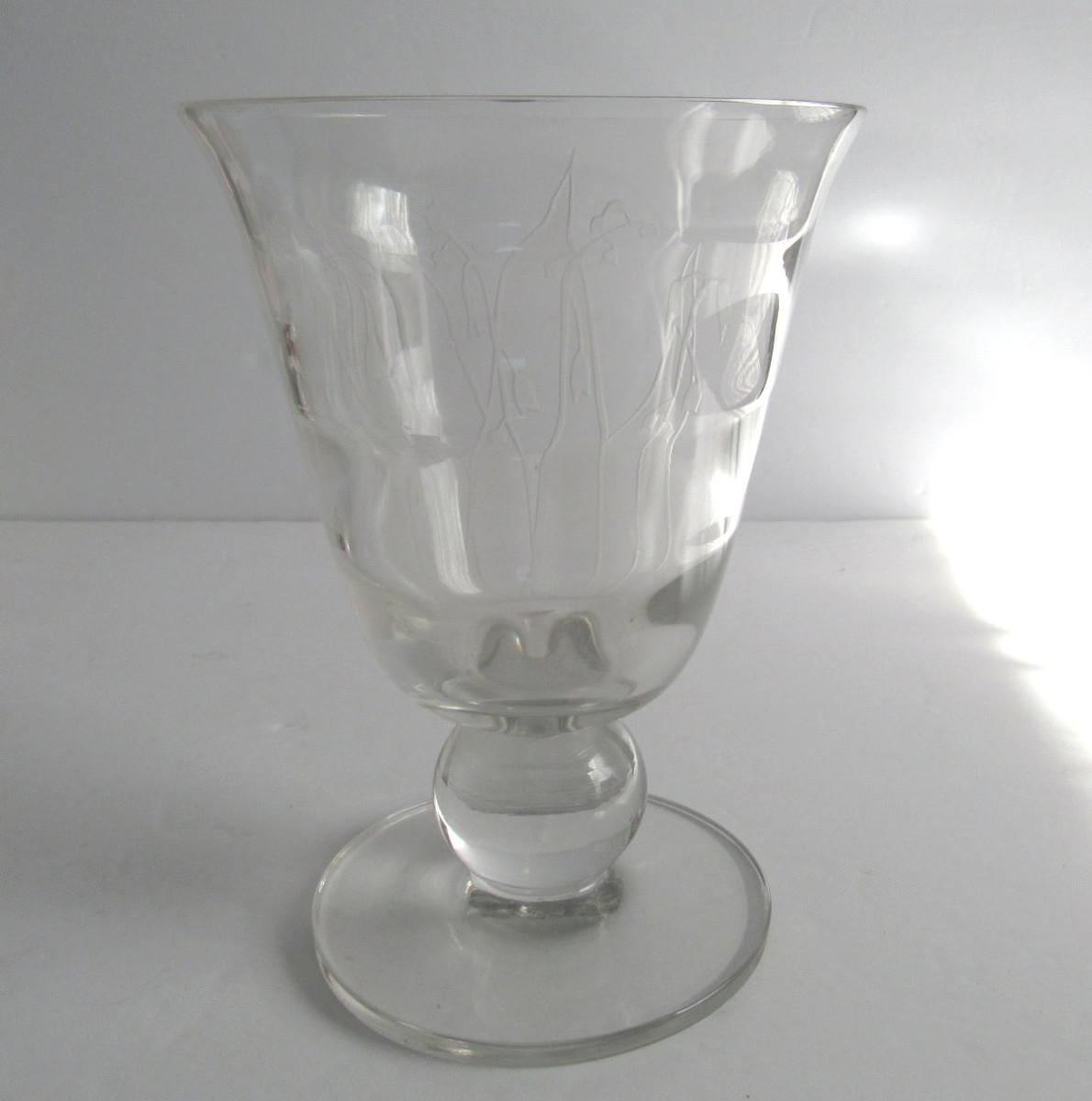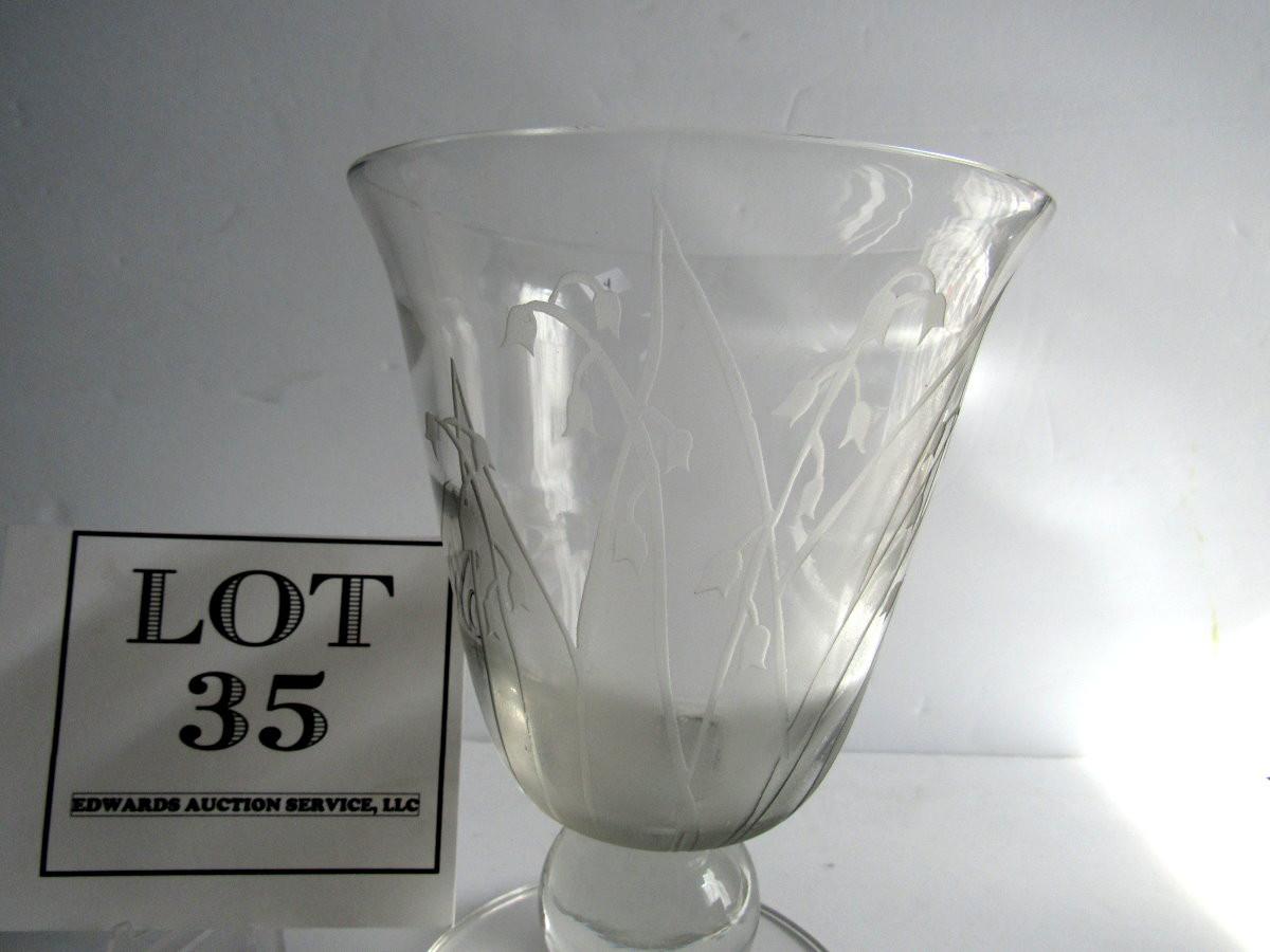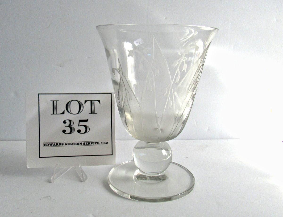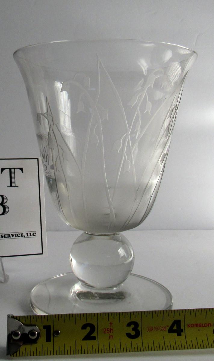 Vintage Tiffin Clear Vase With Floral Etching or Cutting, Billie Kay Artist Signed