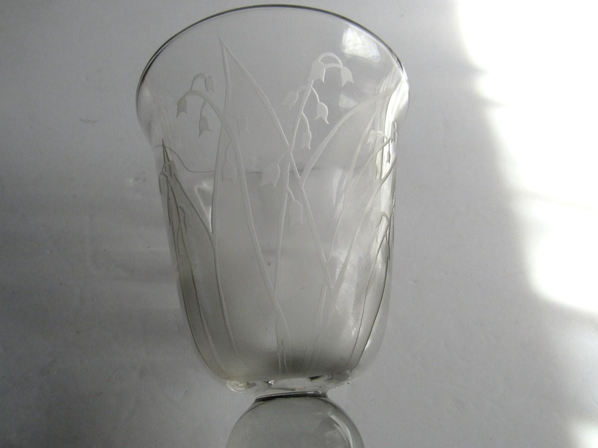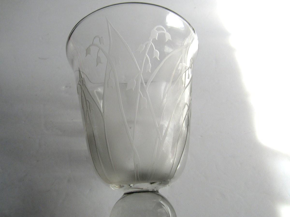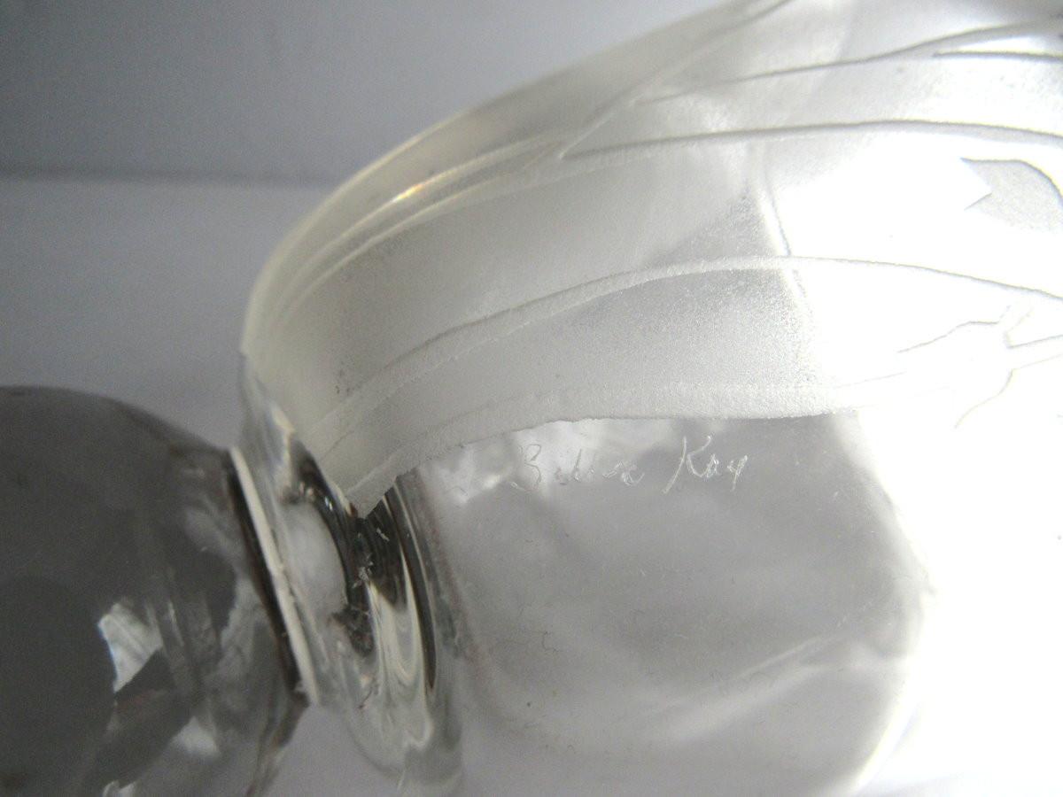 Sorry about the poor pics. This is very pretty in person, nice and clear with a lovely floral sand etched/cut design. It is in good shape with no damage that I can see. It is artist signed as seen in last photo - Billie Kay. Shipping is available at actual shipping cost plus $5.00 handling fee per box for supplies/labor. See our terms for details. All sales are final. Condition notes may not be all inclusive, we may miss some issues as most vintage items are not in mint condition and have some degree of wear, paint loss, etc, but we always try to note obvious damage.