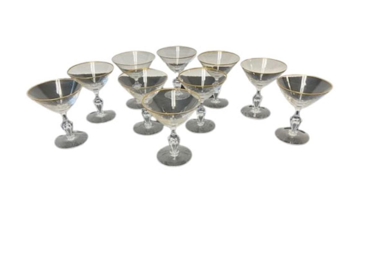 There is some wear to the gold trim. Total of 10 pieces. No obvious chips or cracks. Measurement: 5"H (each). [EC]