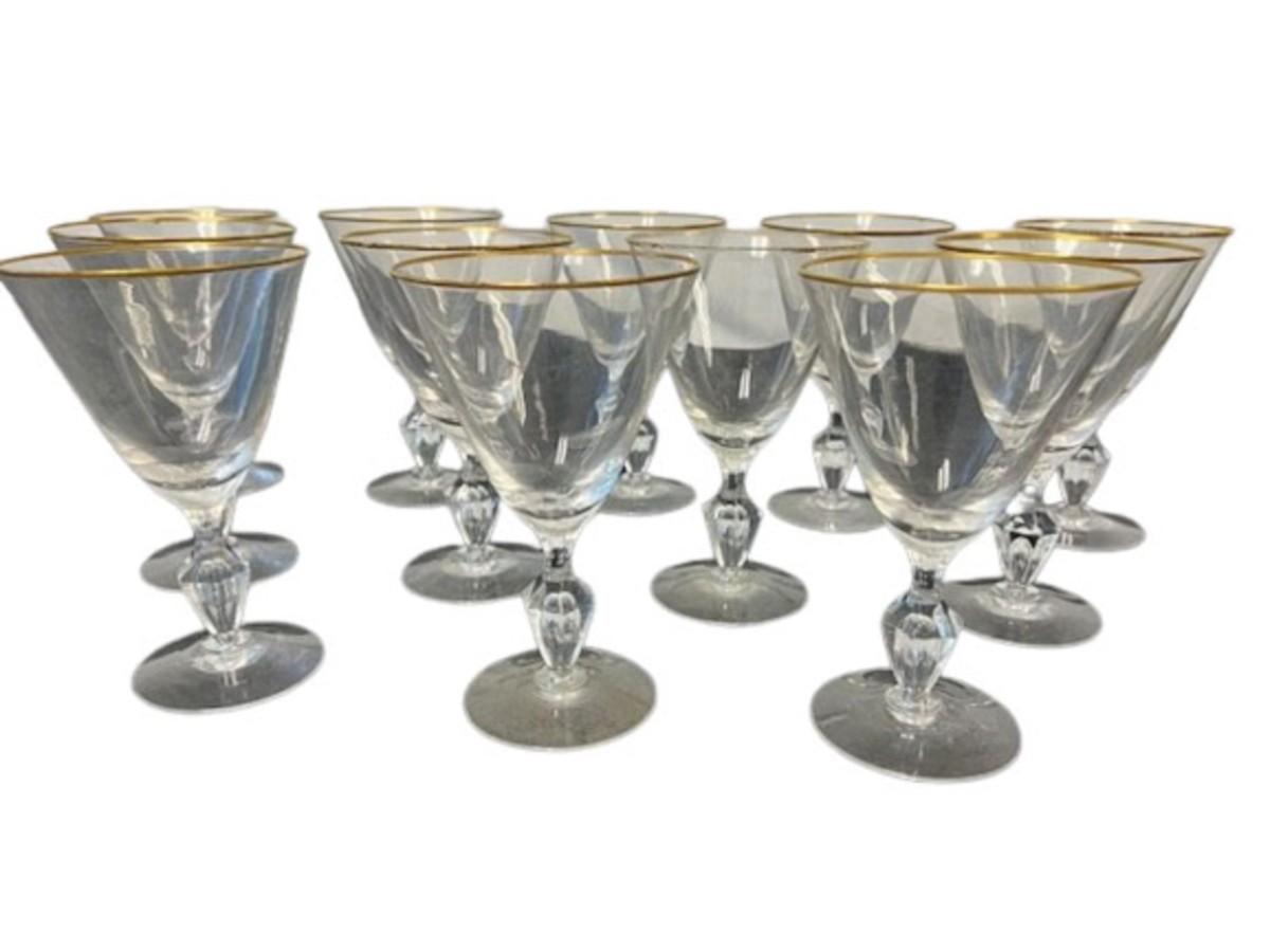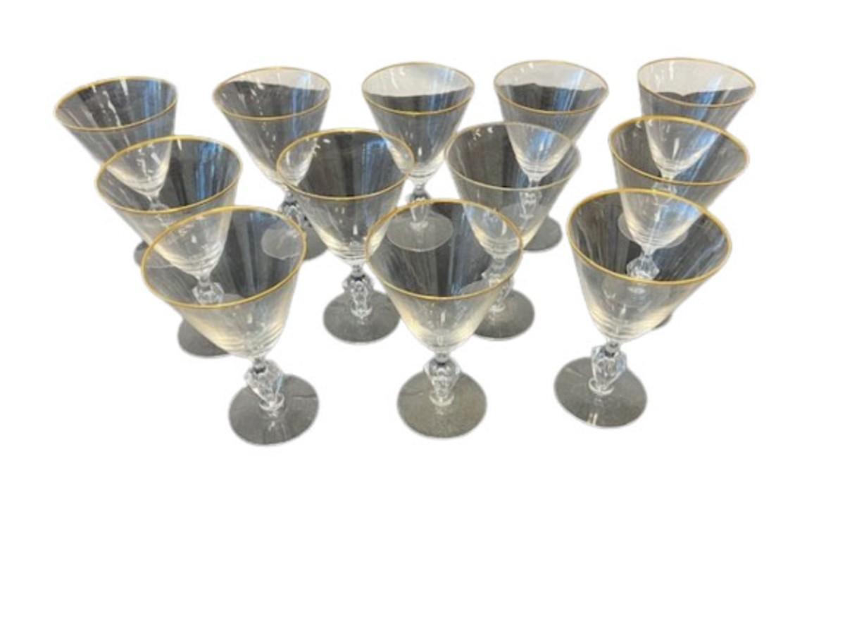 Total of 12 pieces. There is some wear to the gold trim. Measurement: 6.5"H (each). [EC]
