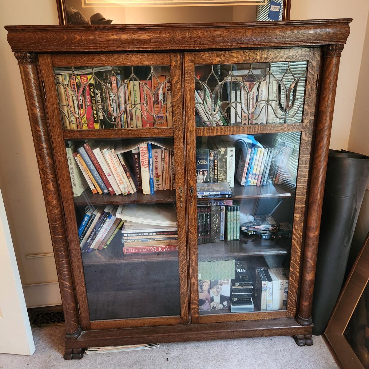 Vintage Tiger Oak Glass Front Book Display Case 48" l 58" H