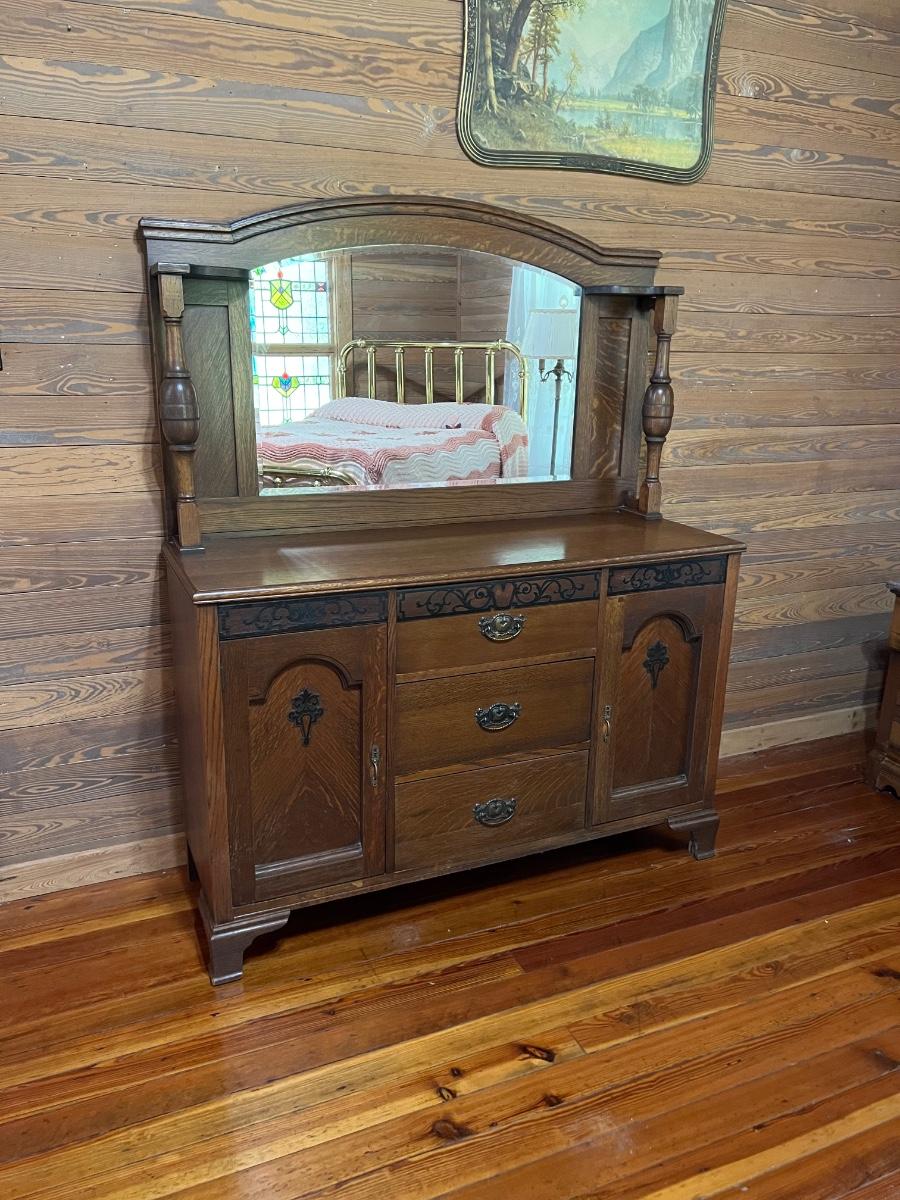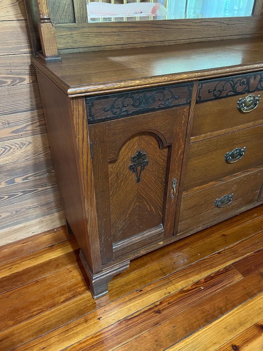 Tiger Oak Beveled Mirrored Sideboard ~ Excellent