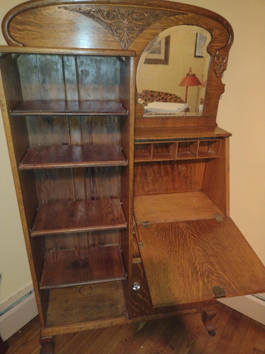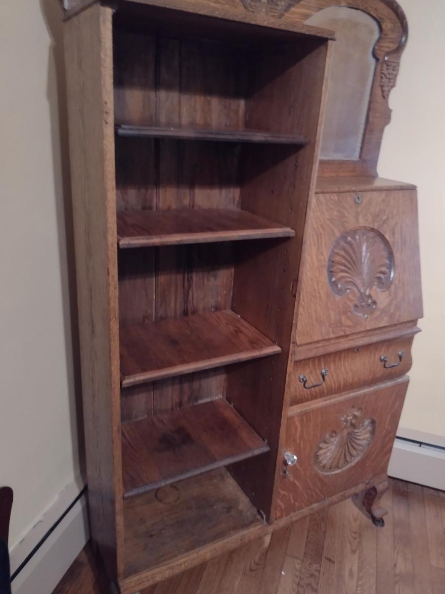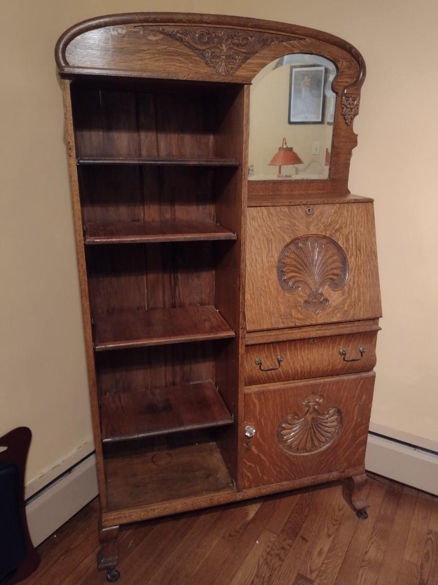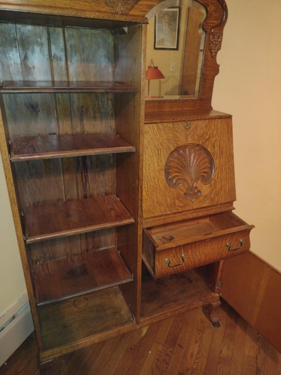 Vintage Tiger Oak Side by Side Book Shelf and Secretary with Mirror (K)
