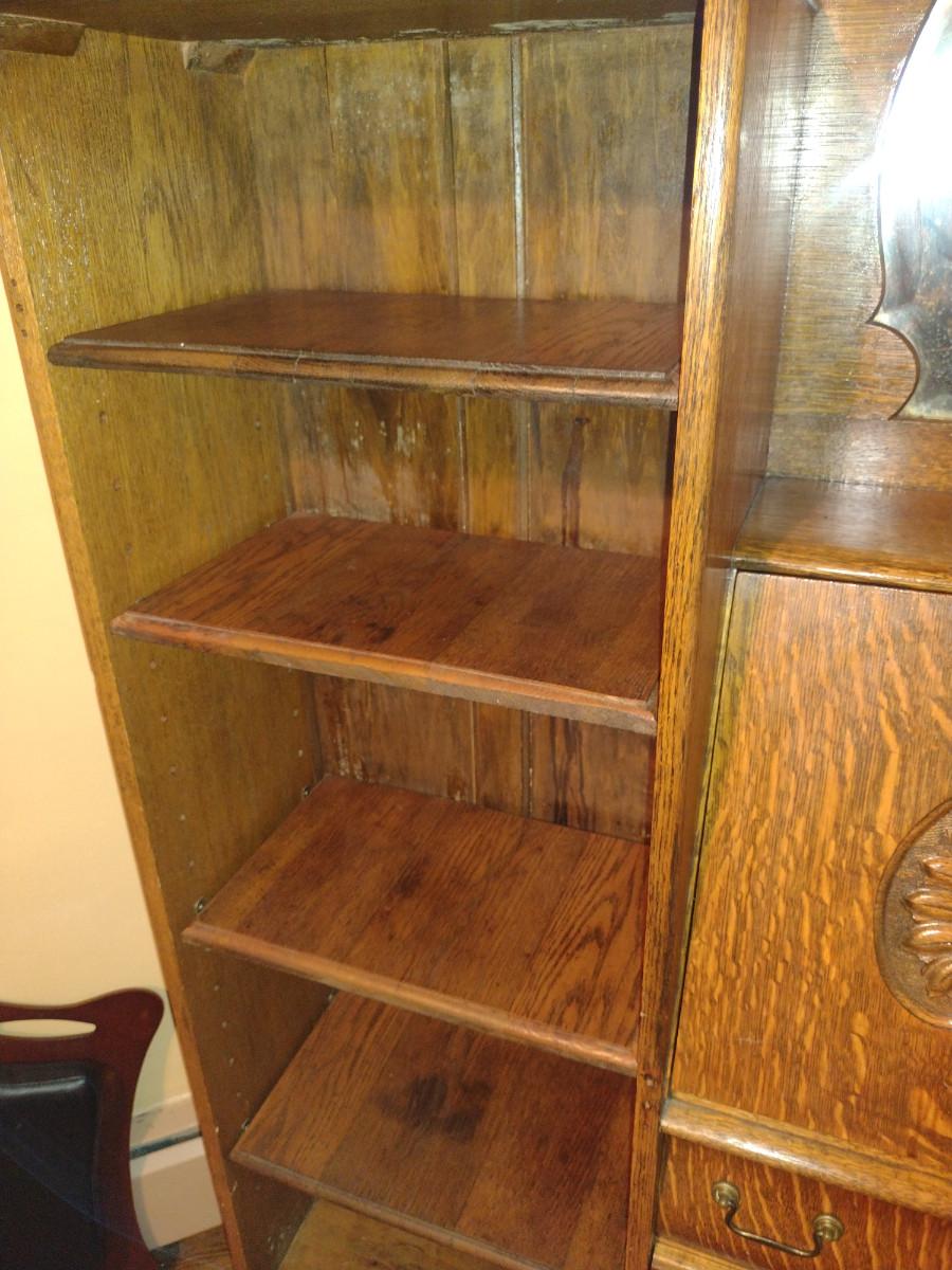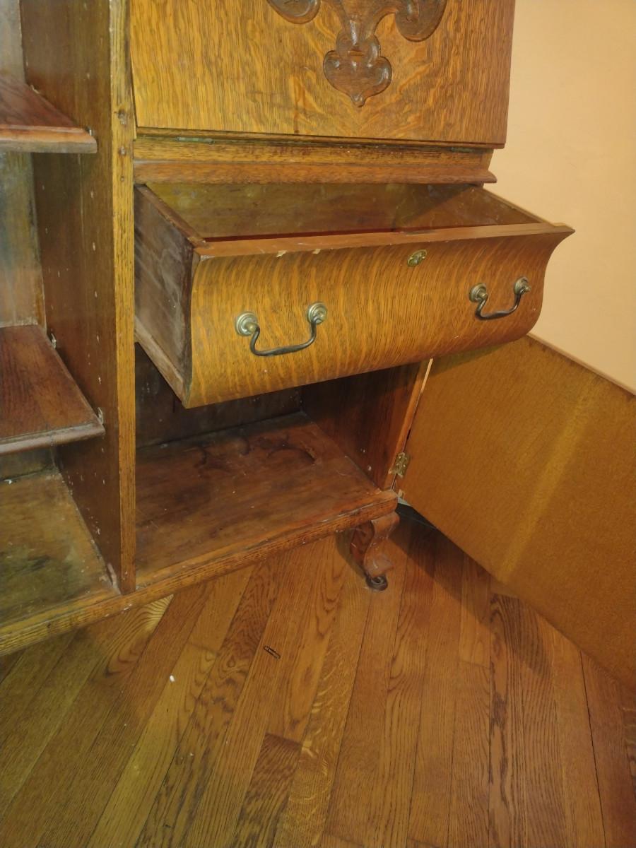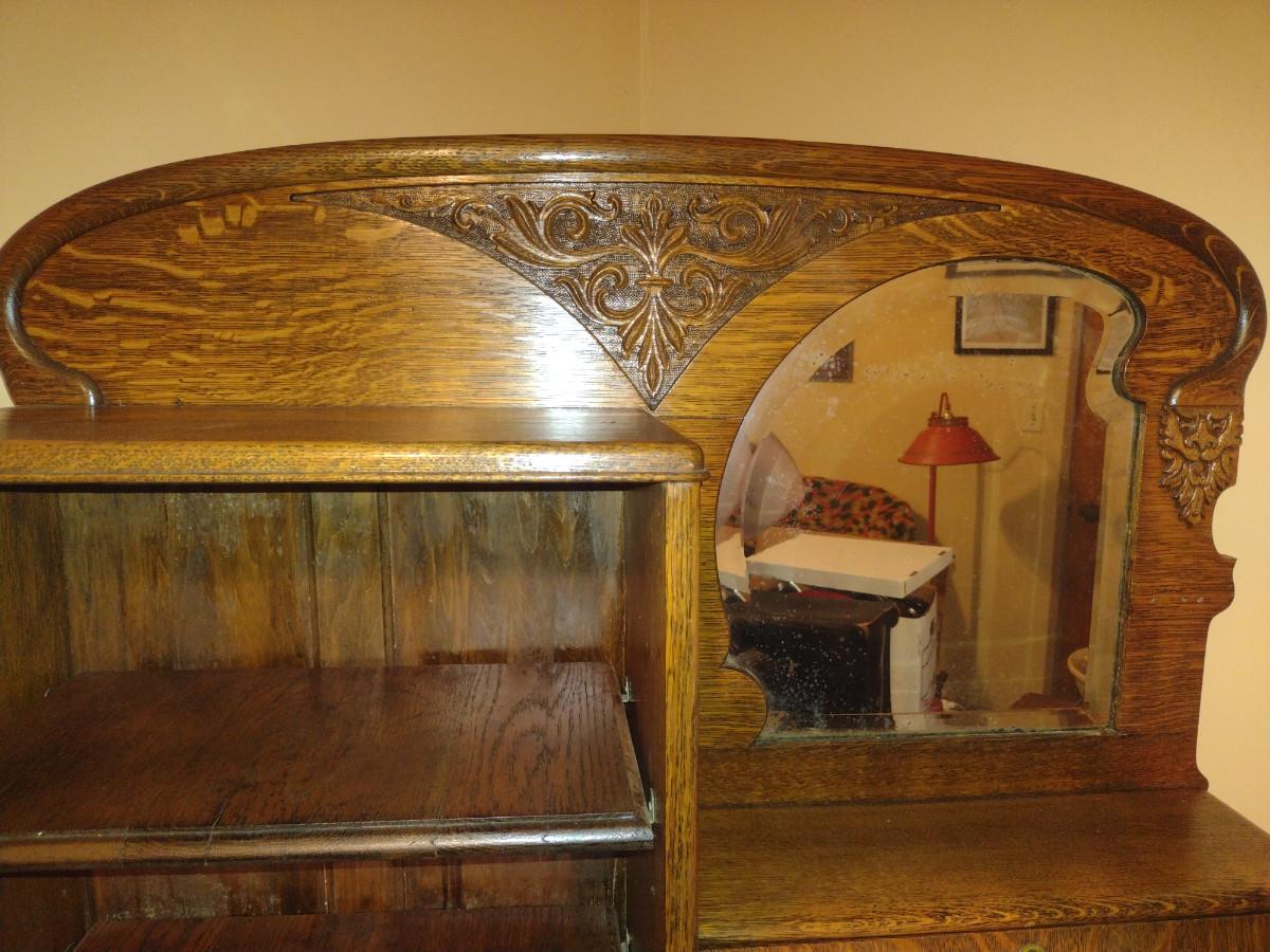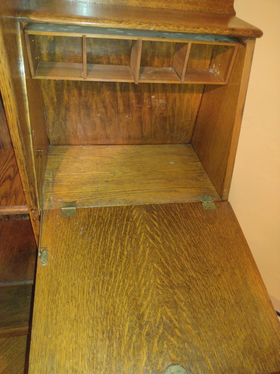 Vintage Tiger Oak Side by Side Book Shelf and Secretary with Mirror (K)