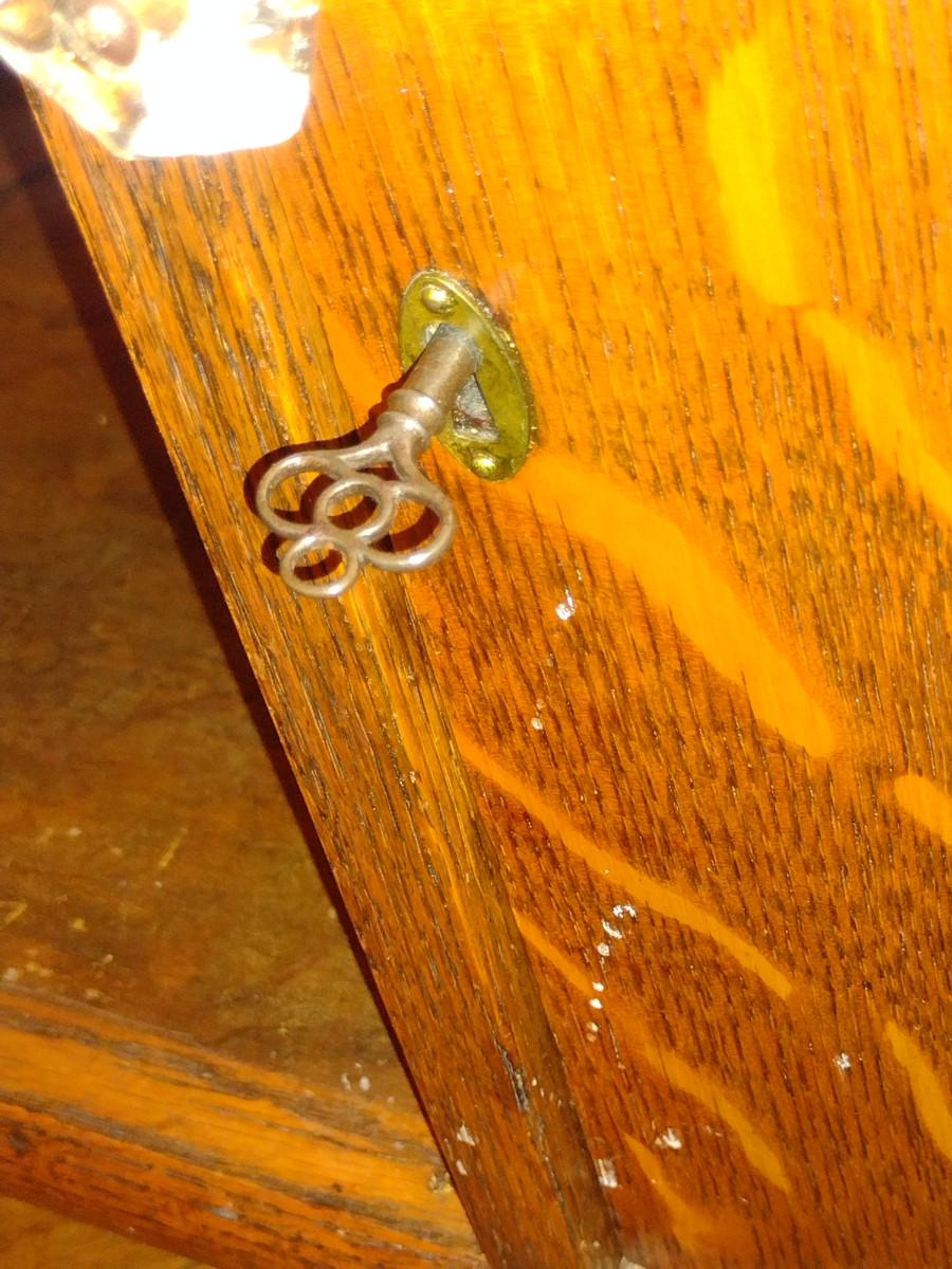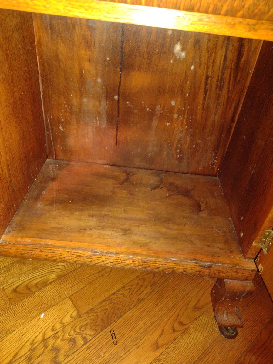 Vintage Tiger Oak Side by Side Book Shelf and Secretary with Mirror. Has key.