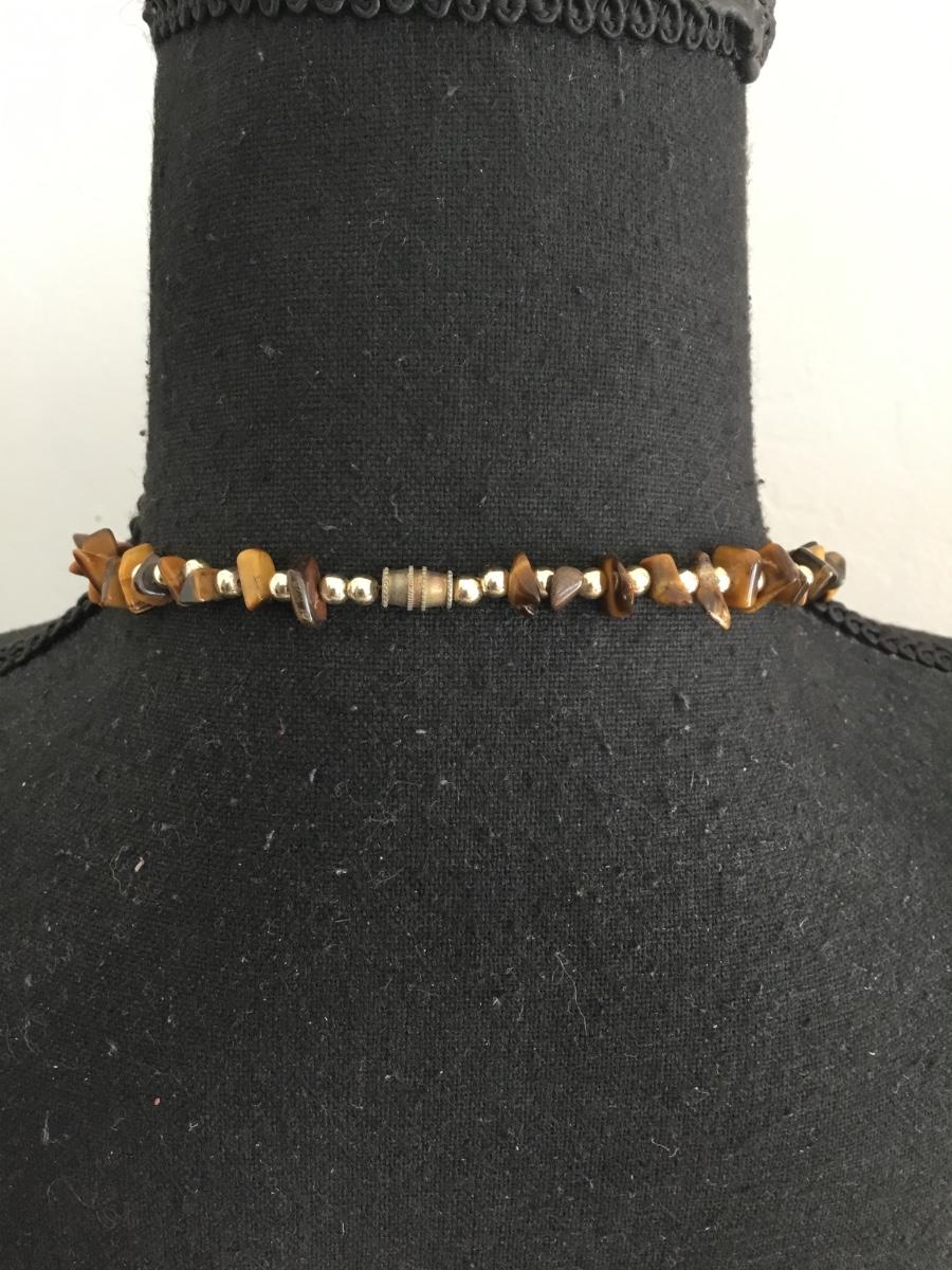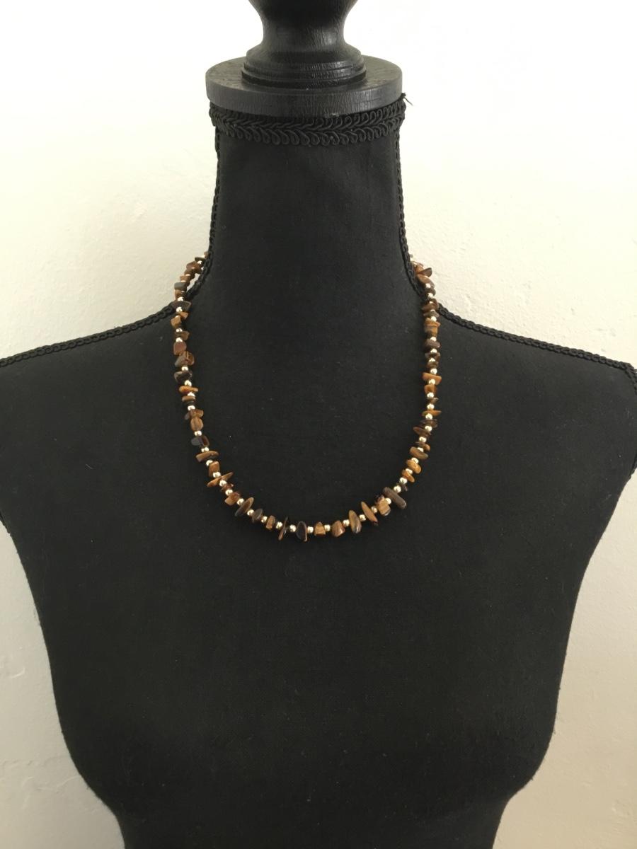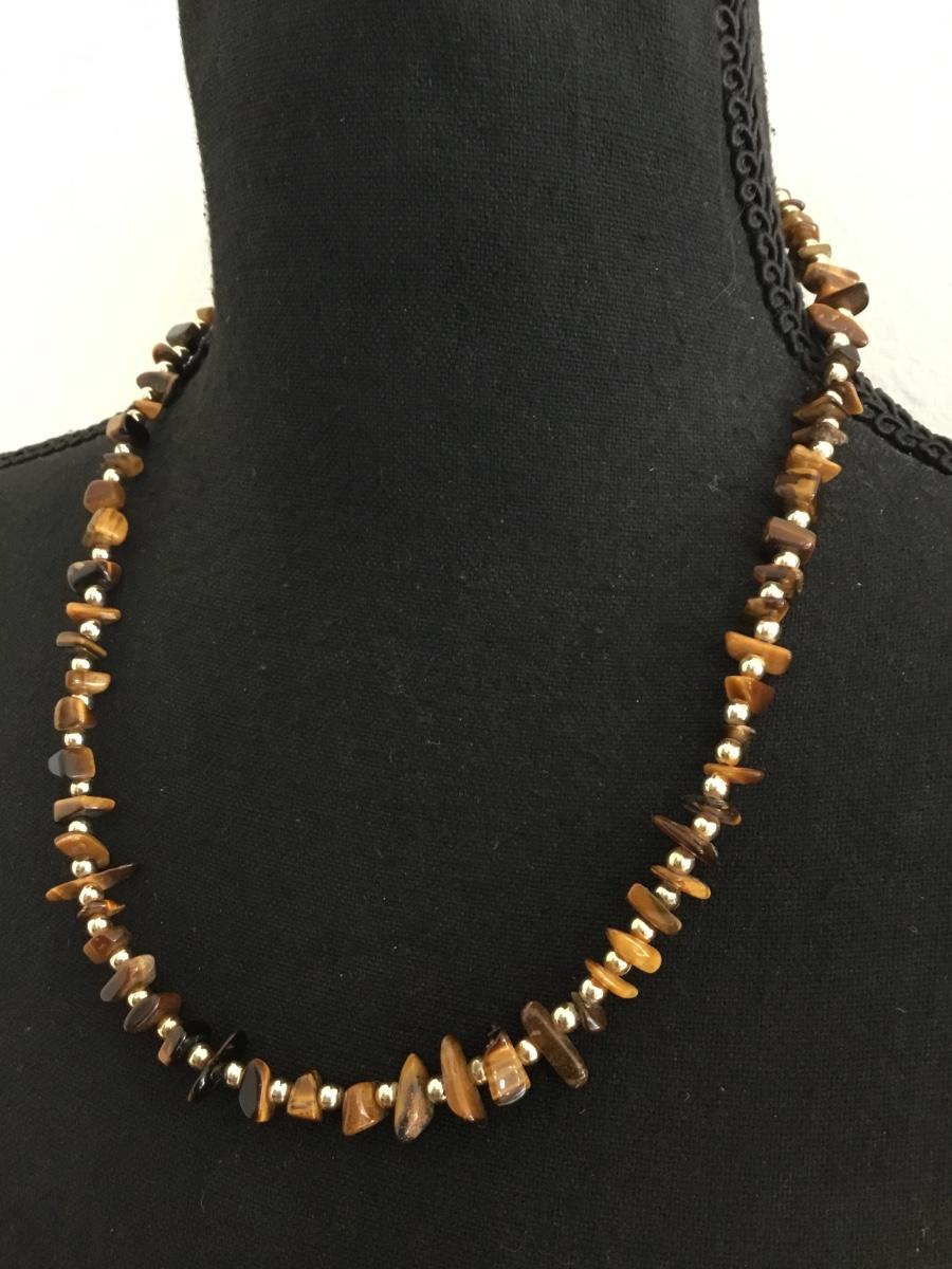 Vintage, tigers, eye chip goldtone, necklace barrel clasp