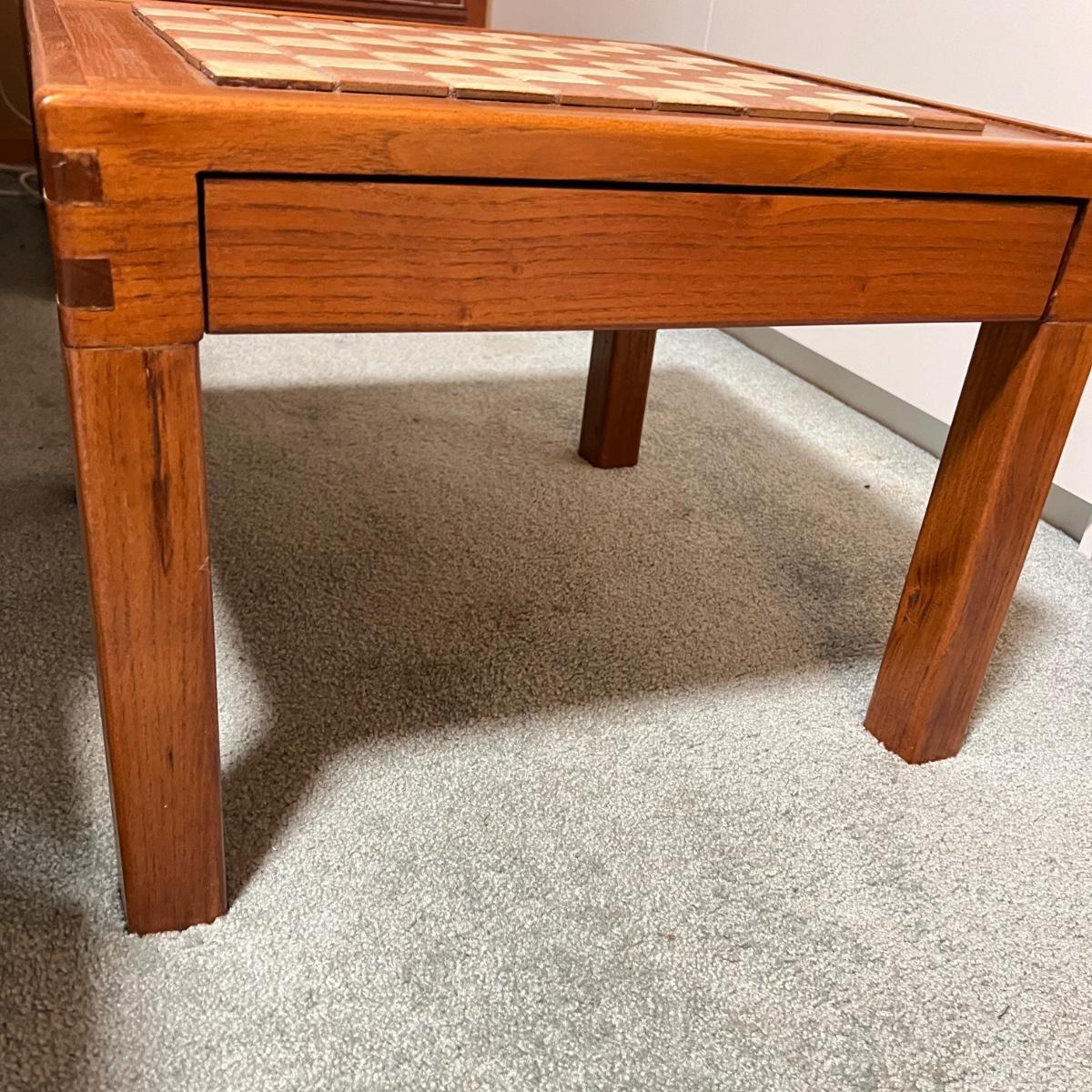 Vintage Tile Top Chesa Checkers Table Drawer Game Pieces