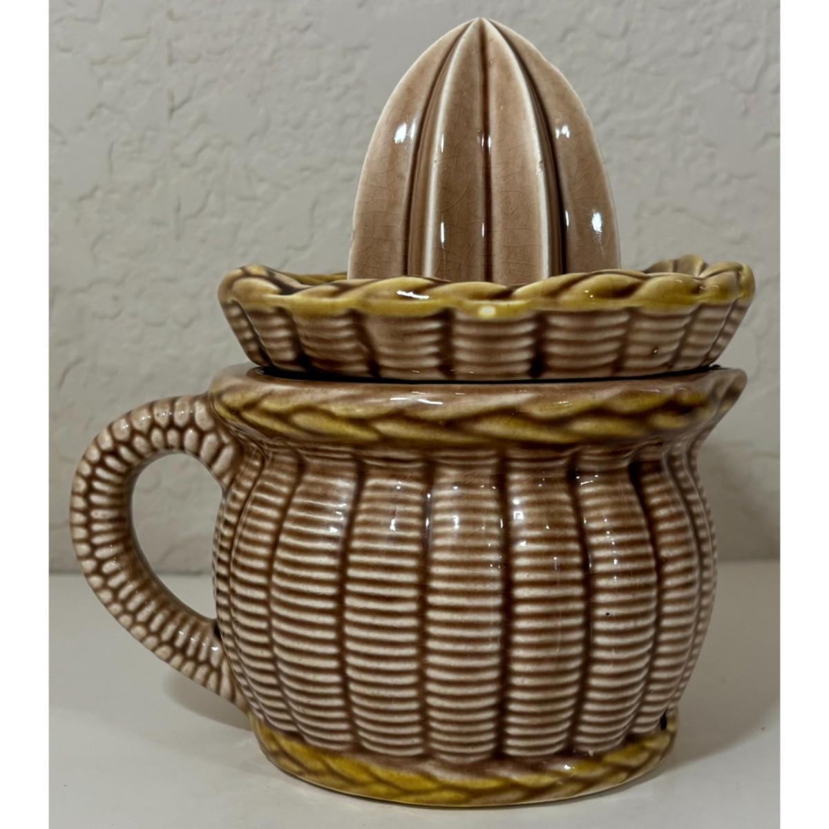You get one ceramic juice squeezer that is in good condition with minor surface wear. It measures approximately 3.5" in diameter at the base and stands roughly 5.5" tall. Please see all pictures. Thank you for looking. As a reminder, if this is a lot, we do not break up lots. Also, all items are prepacked, so each item is sent individually. Any item that qualifies for media mail and weighs over one pound will be shipped via media mail. Otherwise, the item will be shipped USPS ground advantage, or UPS ground. Shipping for this item is $9.00. Items ship within two days after payment is received. Item SKU is OTH1304.