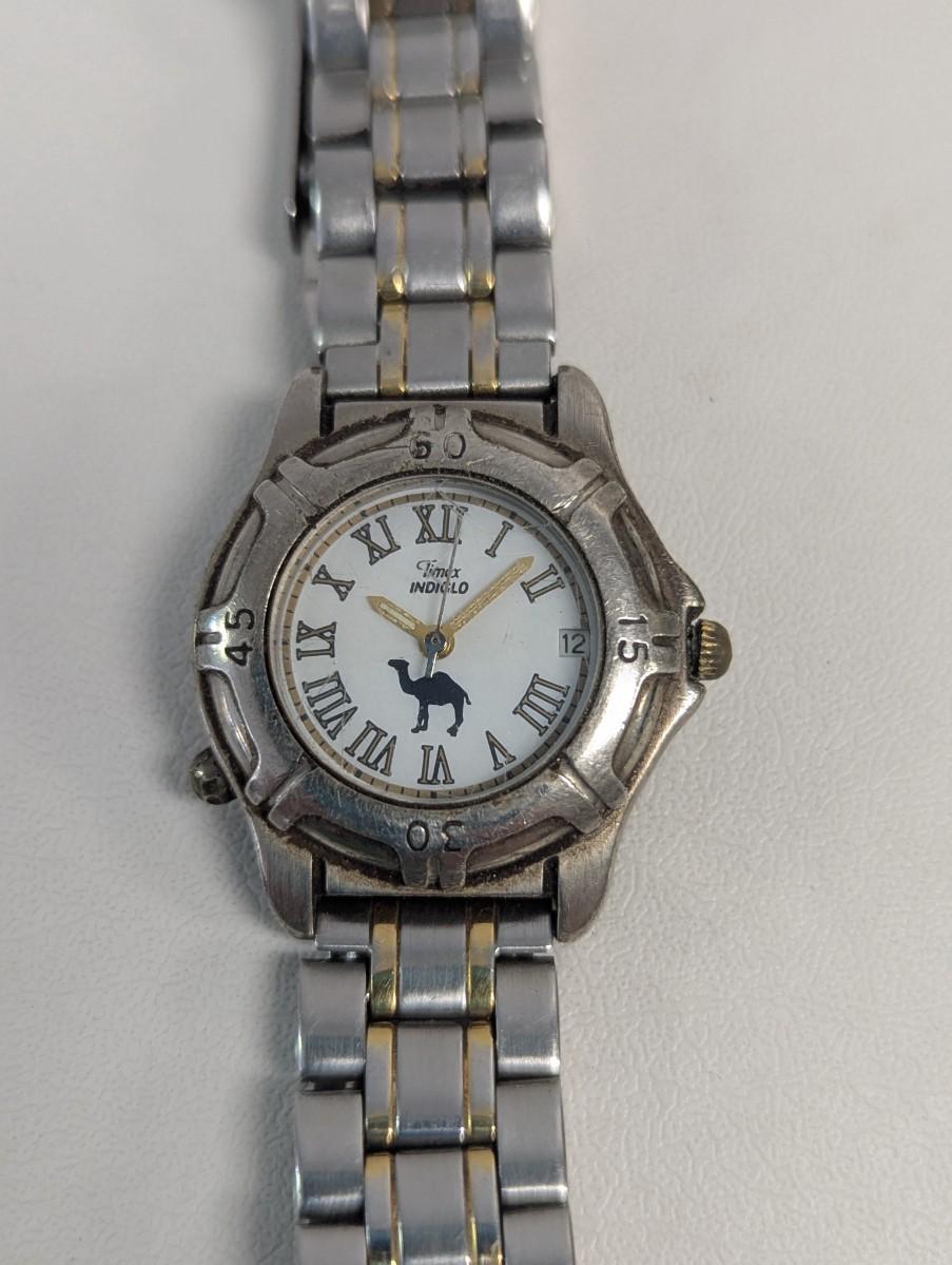 Vintage Timex Indiglo Ladies Two-Tone Camel Bucks Quartz Analog Watch