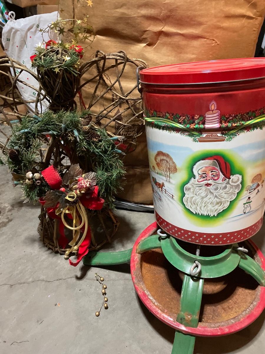 Vintage tin, angel and Christmas tree