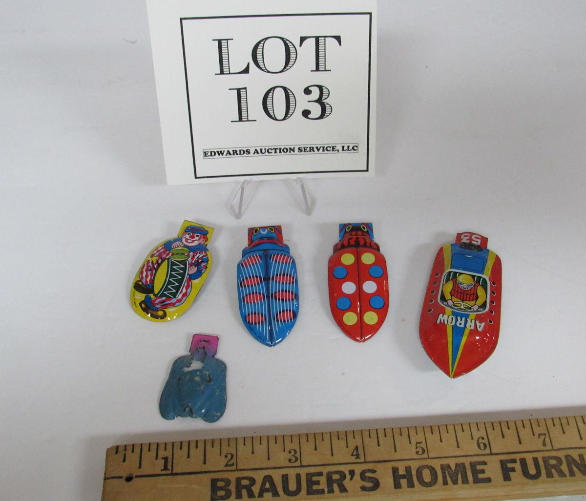 Vintage Tin Clickers and Whistle, Lot of 5