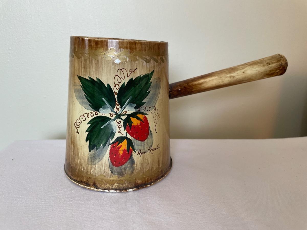 Vintage Tin Dipper signed Toleware Painted Strawberry by Ann Rawlin