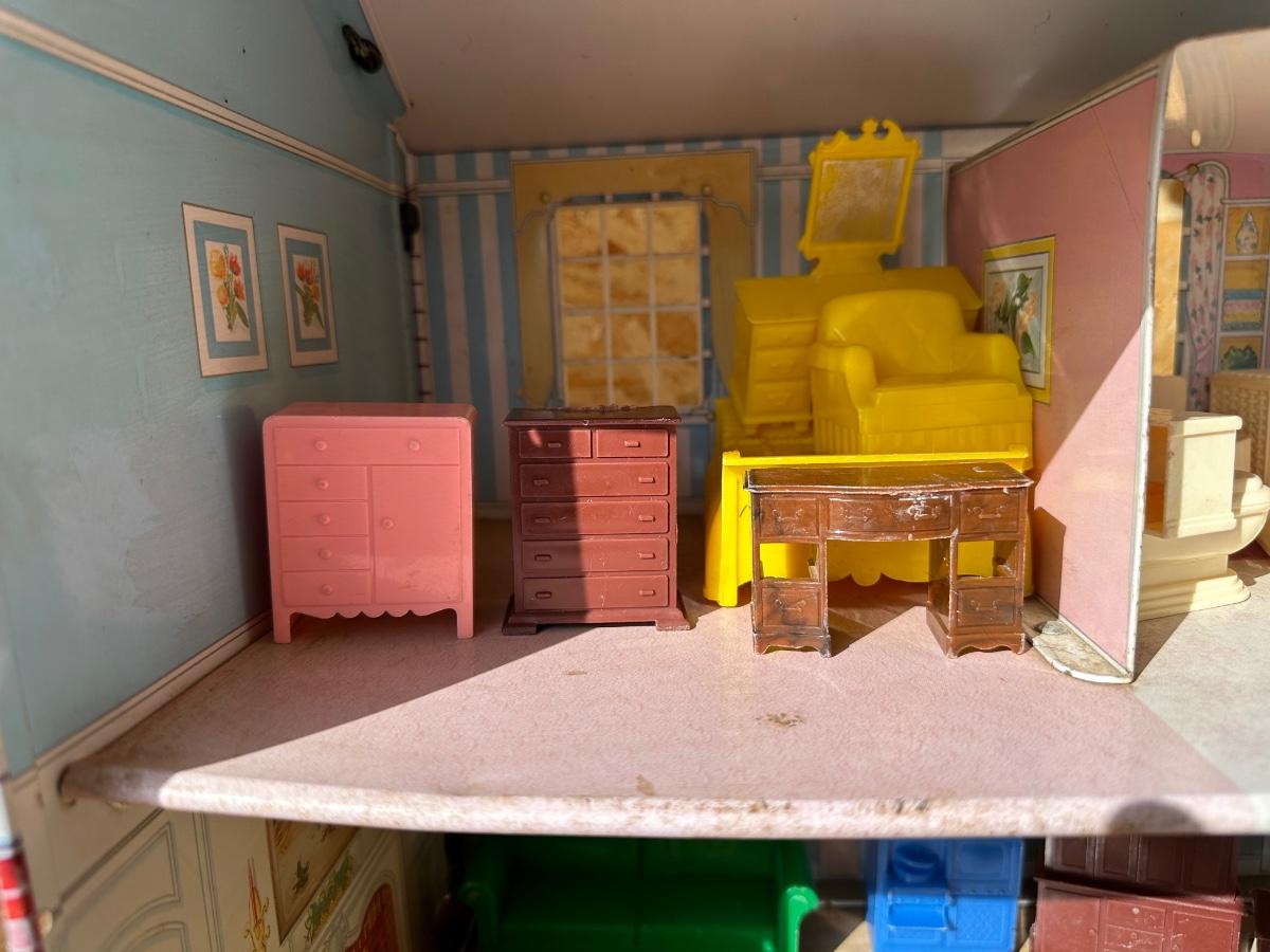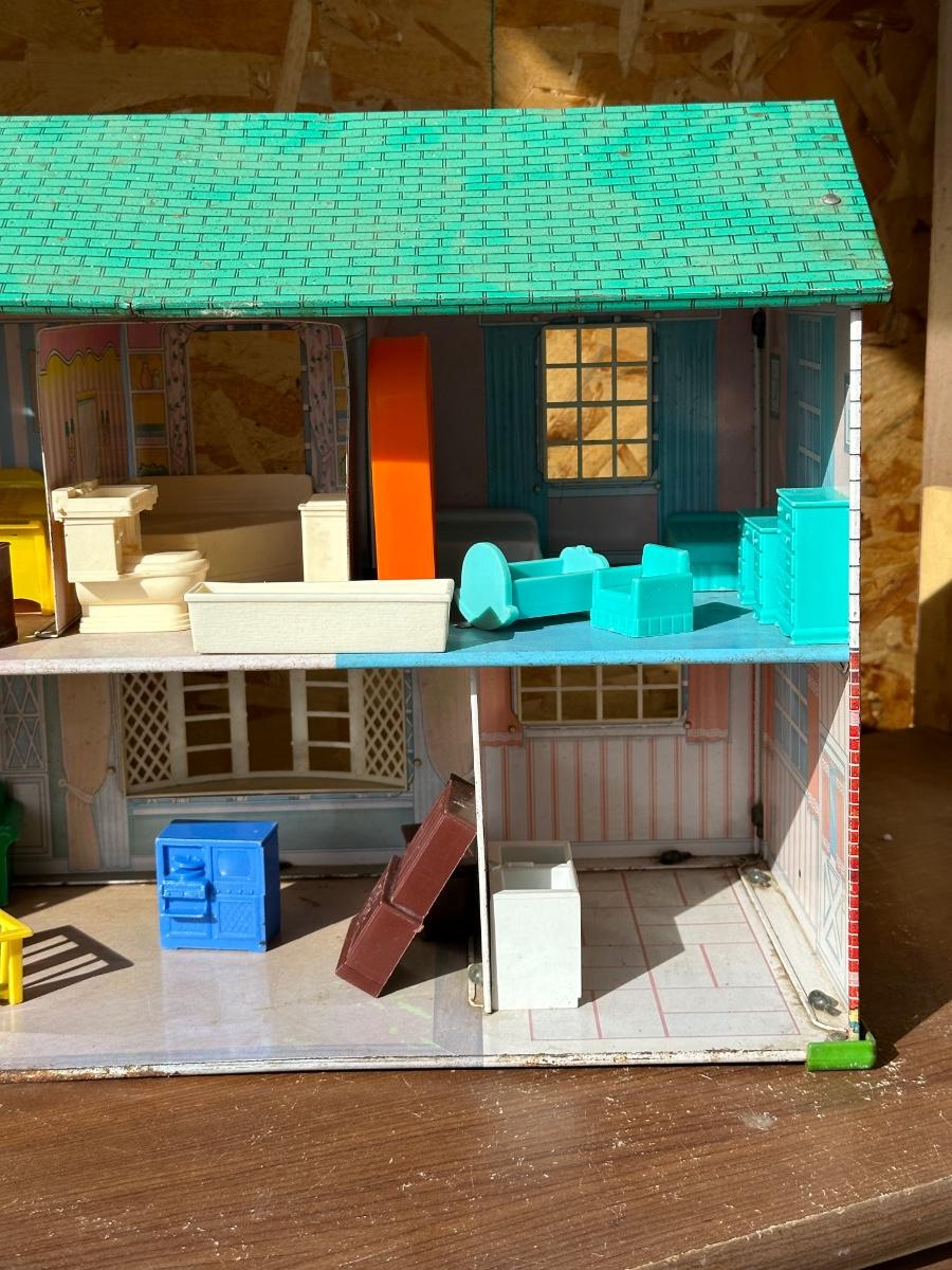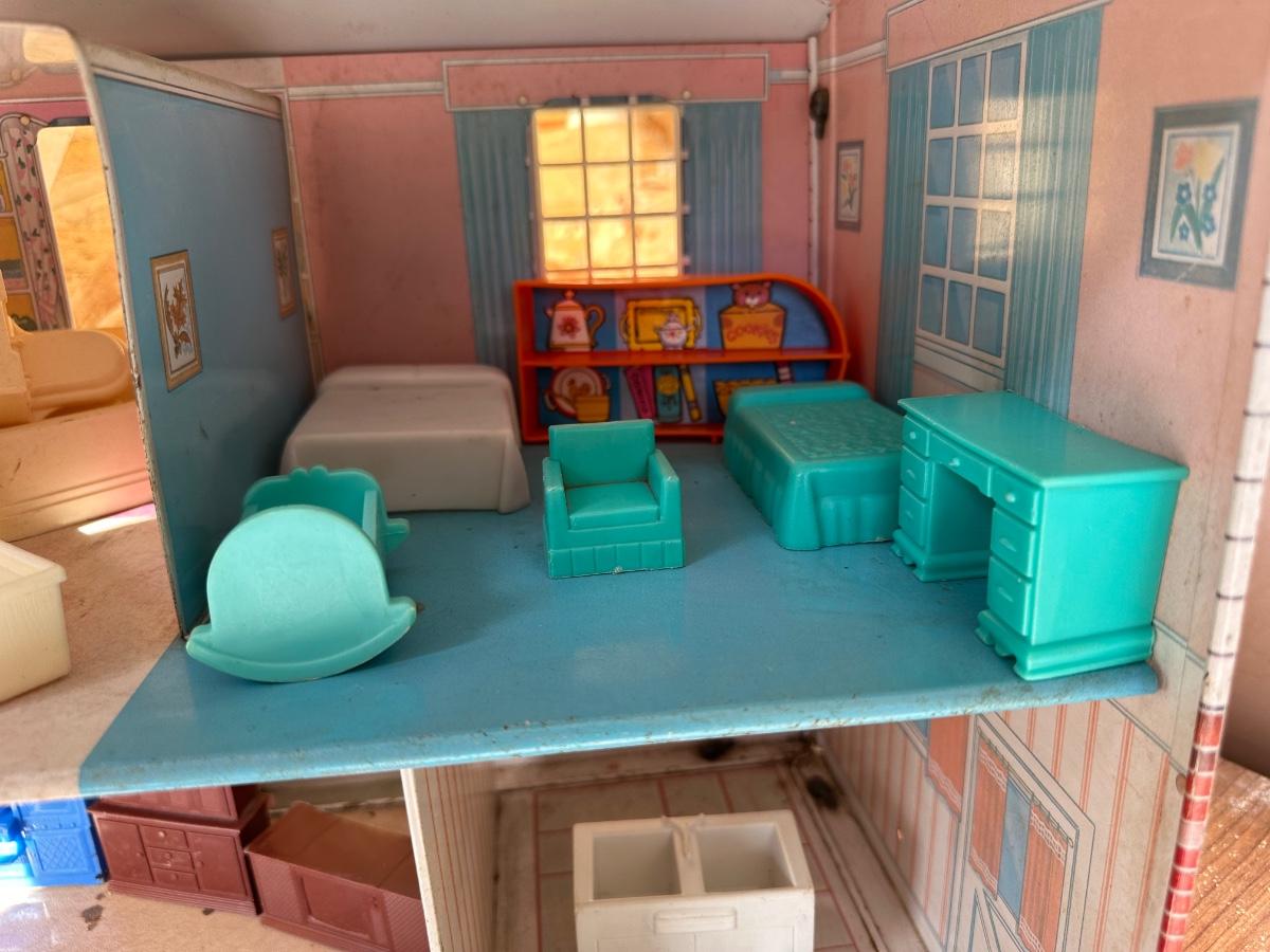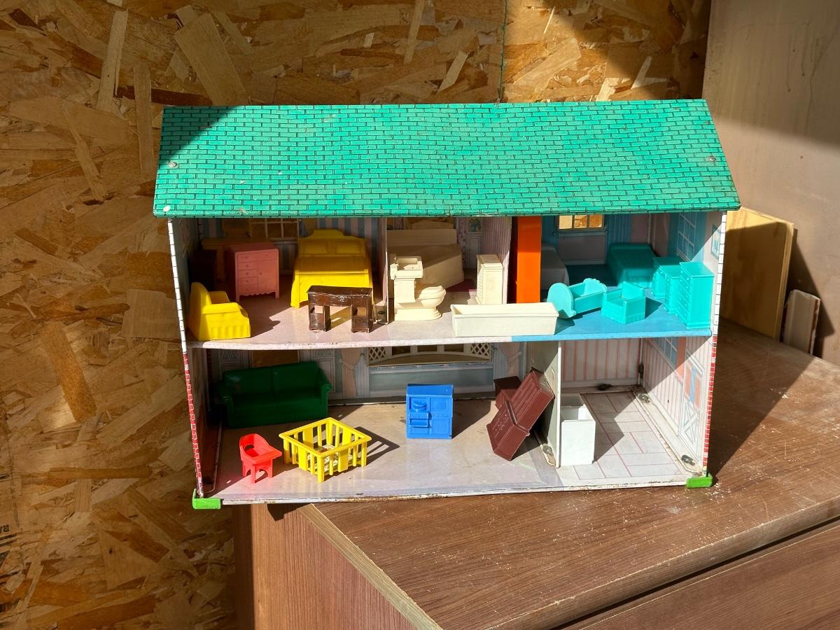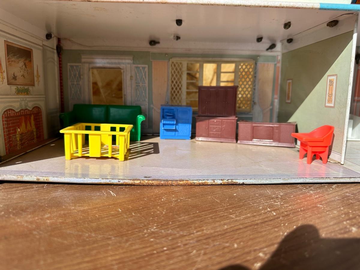 VINTAGE TIN DOLLHOUSE WITH FURNITURE