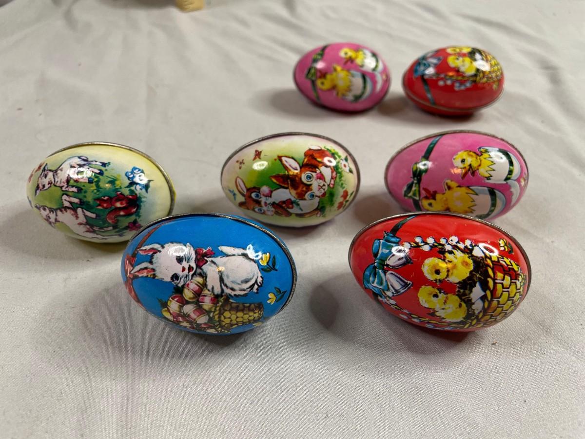 There are a total of 7 eggs and 5 have unique patterns. All are in great condition and one still has the original candy in it. I strongly recommend not eating this candy.<br />